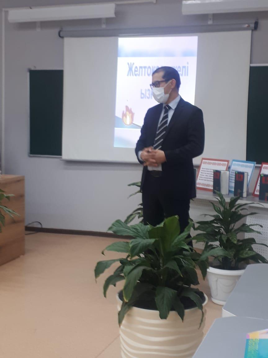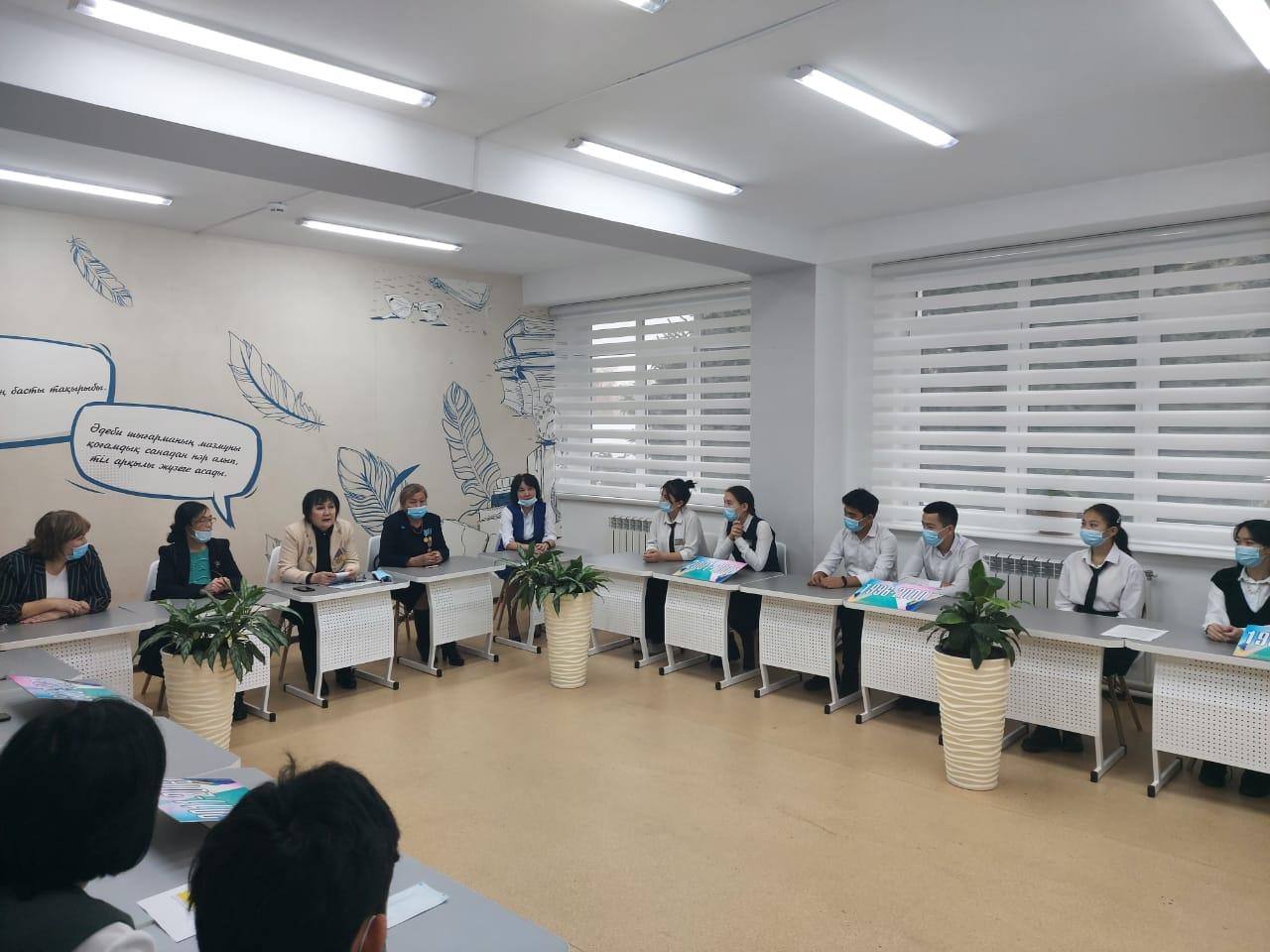 Кездесудің қадірлі қонақтары "Желтоқсан Ақиқаты" Республикалық қоғамдық бірлестігінің төрағасының орынбасары Нүргалиева Шолпан Калмахановна мен осы ұйымның белсенді мүшесі Нұргалиева Айман Калмахановна және мектебіміздің ұстаздары Мустафаева Аккумис Калмухановна мен Саламатова Балданай Елдесбековна оқушылармен сыр сұхбат жүргізді. Тарихи-танымдық шараның негізгі мақсаты желтоқсан құрбандарының ерлігін, жалынды жырларын оқушылардың көңіліне ұялату, патриоттық тәрбие беру