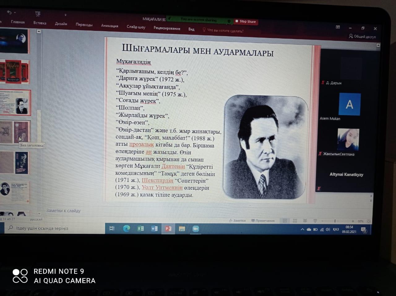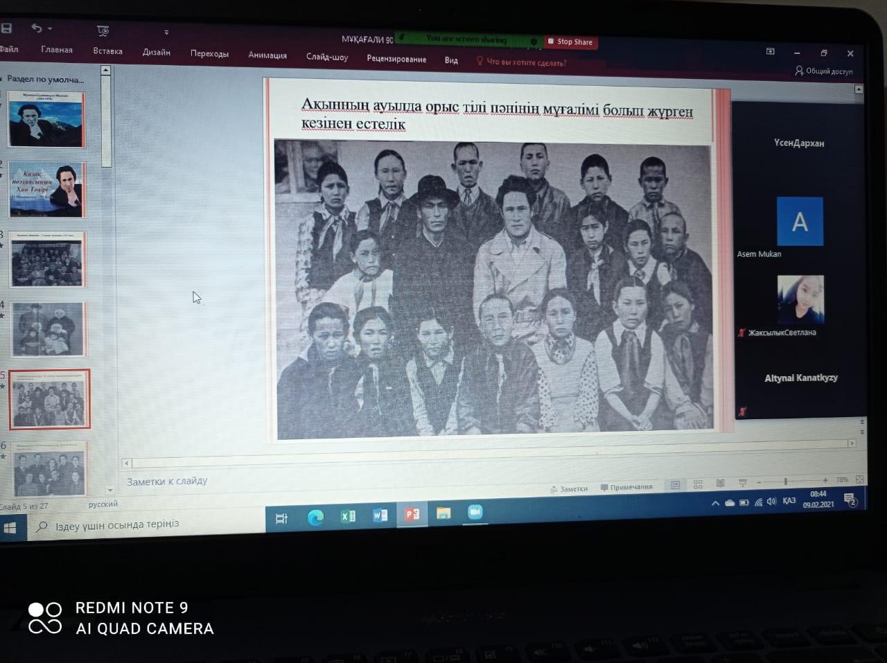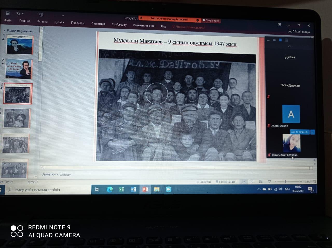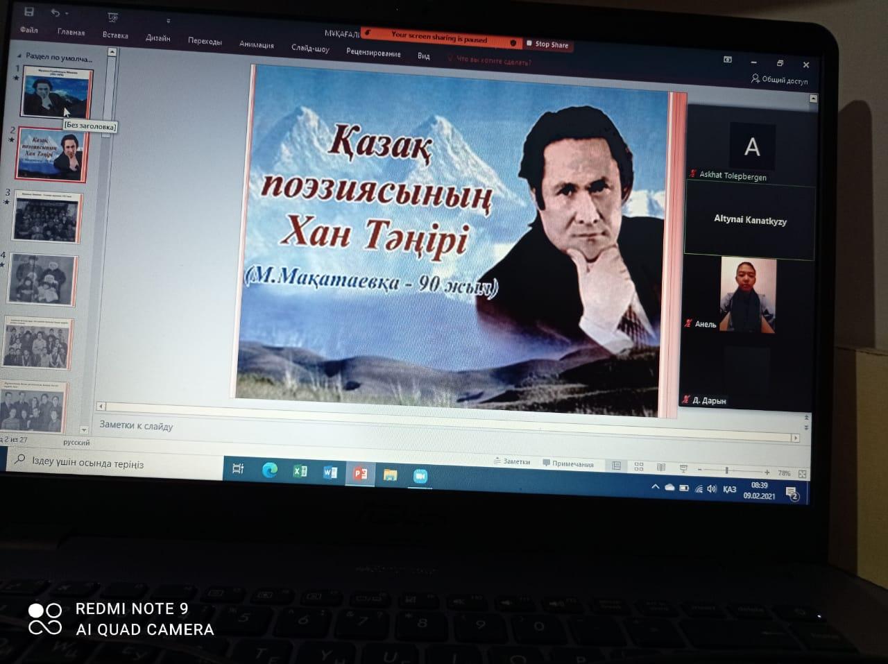 Жетісу аудандық Білім бөлімінің тапсырмасымен Сүйінбай атындағы #143 мектеп-лицейдің жоспарына сәйкес Тәуелсіздіктің 30 жылдығын мерекелеу аясында ақиық ақын Мұқағали Мақатаевтың туғанына 90 жыл толуына орай "МұзАрт таудың мұзбалағы"тақырыбында 10 "Ә" сынып оқушылары арасында сынып сағаты болып өтті. Сынып жетекшісі Иманбаева Алмагүл