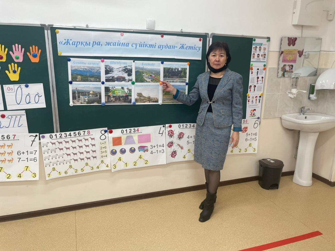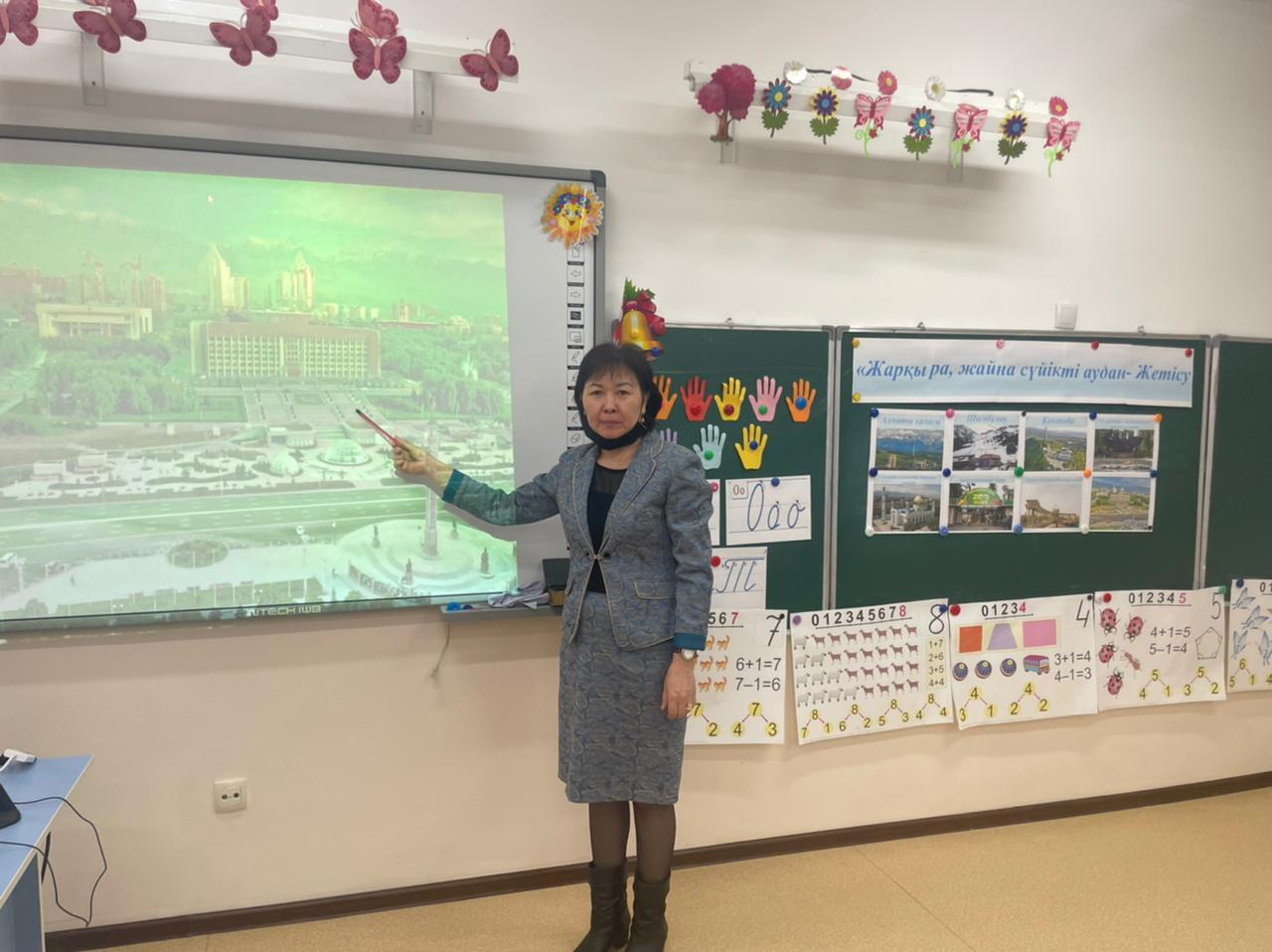 Алматы қаласы Білім басқармасы Жетісу ауданы Сүйінбай атындағы №143 мектеп-лицейдің МЕДИА-ГРИД мектепішілік жоспарына сәйкес Жетісу ауданының 85 жылдық мерейтойына орай ««Жарқырап, жайна сүйікті аудан-Жетісу» тақырыбында 1 «А» сынып оқушыларымен тәрбие сағатын өткізді.Тәрбие сағаты барысында аудан тарихы, ауданның көрікті жерлері мен ауданымыздан шыққан тұлғалар жайлы ақпараттар айтылды
