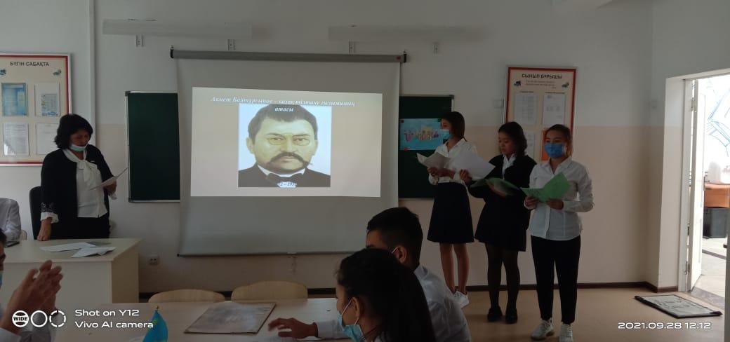 Тіл мерекесінің онкүндігіне арналған іс-шарада қазақ тілі мен әдебиеті пәнінің мұғалімі Сейілбекова Гүлбақша Куаныштайқызы ХХ ғасырдағы қазақ рухани мәдениетіндегі көшбасшысының бірі А. Байтұрсыновтың туған тілге деген құрметі, қазақ тілінің дамуы мен тіл тазалығын сақтаудағы еңбектерін насихаттауда өткізген сыныптан тыс сабағынан көрініс.