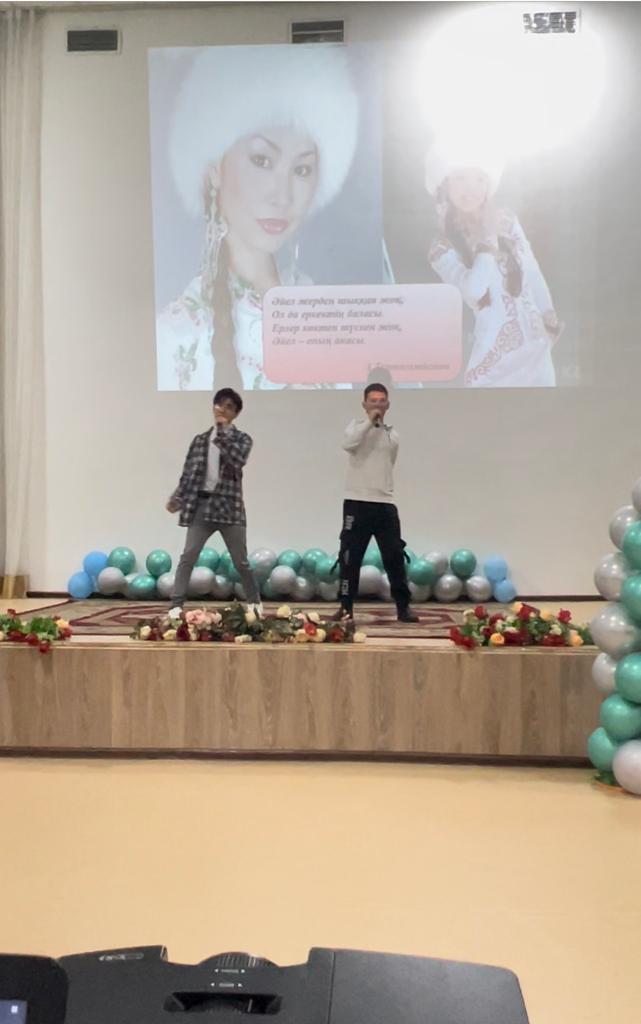 Жетісу ауданы, Сүйінбай атындағы #143 мектеп-лицейде 9 “В” сынып оқушылары 8 наурыз мерекесіне орай “Бәрі де, ана, бір өзіңнен басталады” атты тақырыпта аналар мен ұстаздарға арнап мерекелік кеш ұйымдастырды. Сынып жетекшісі Қожбанов Жұбаныш Мәлікұлы