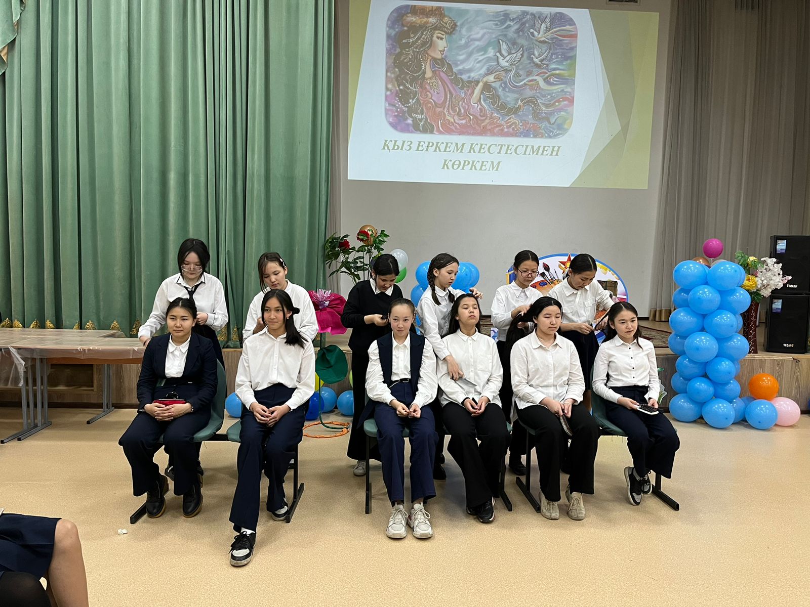 7-сынып оқушылары арасында “Қыз еркем, кестесімен көркем”тақырыбында сыныптан тыс сайыс сабақ болып өтті