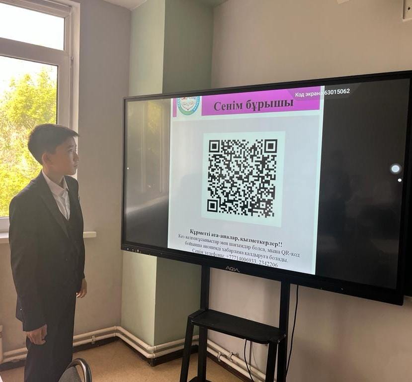 Оқушыларға QR код қалай пайдалану керектігі түсіндіріліп, толық ақпарат берілді.