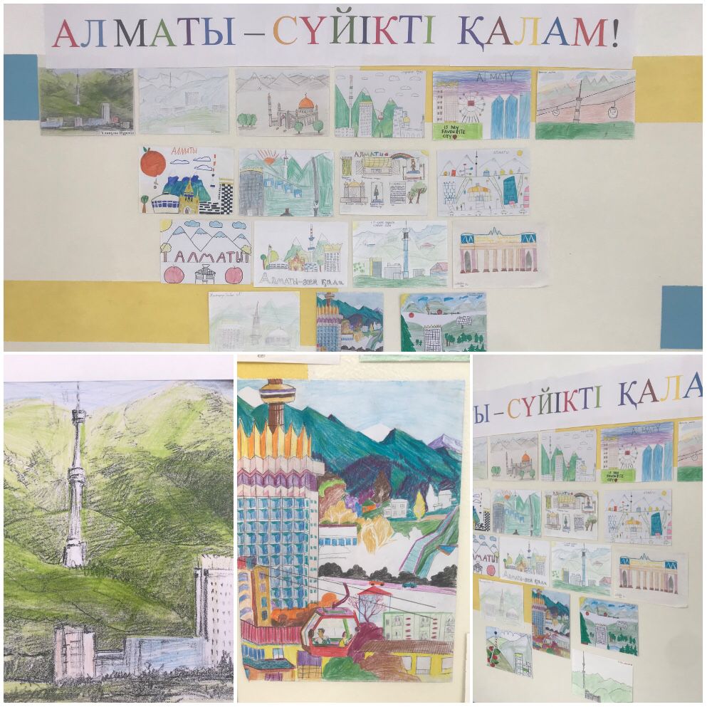 Жетісу ауданы, Сүйінбай атындағы №143 мектеп-лицейінің тәрбие жоспарына сәйкес қала күніне орай 5-сынып оқушылары арасында “Алматы-сүйікті қалам” атты сурет көрмесі өтті.