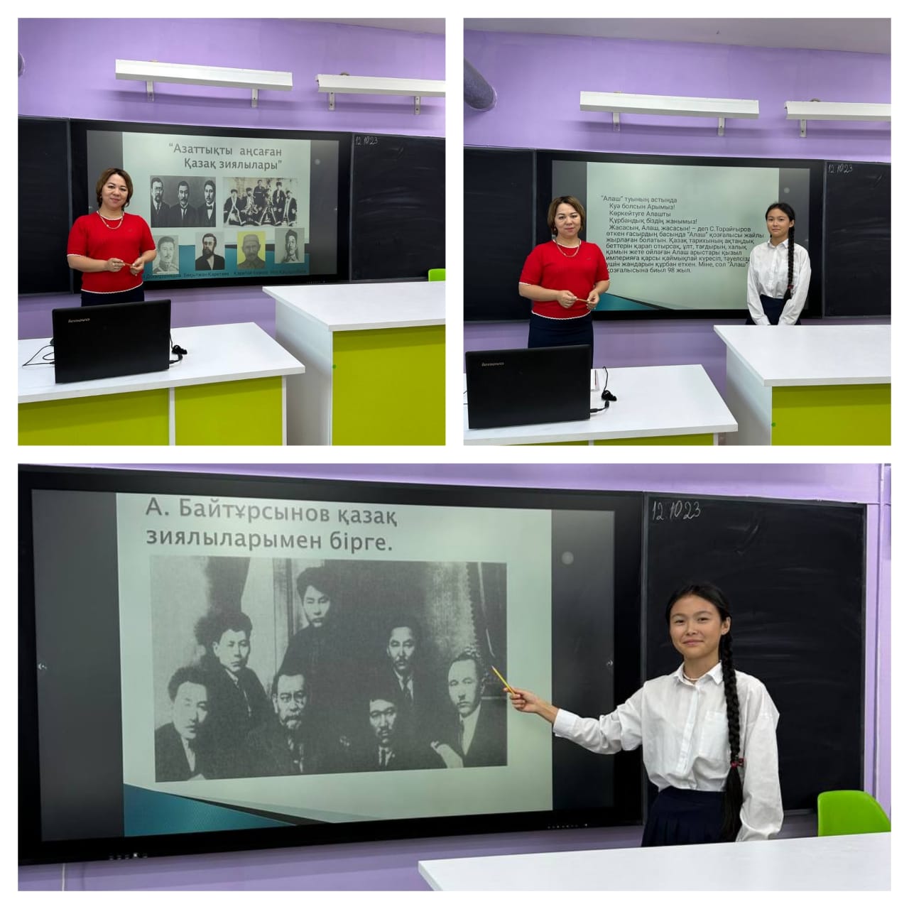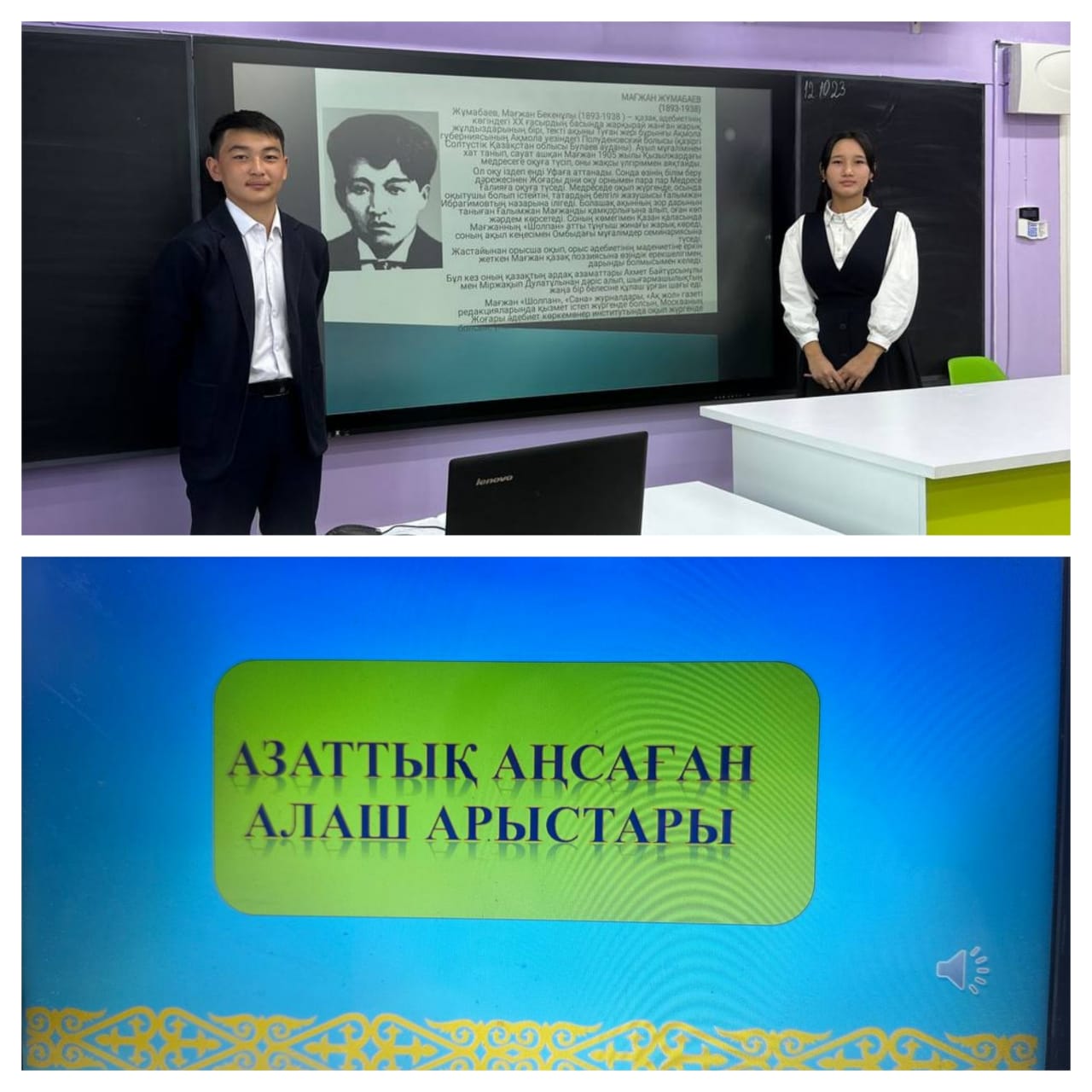 11- сынып оқушылары арасында "Азаттық аңсаған алаш арыстары" тақырыбында сынып сағаты ұйымдастырылды.