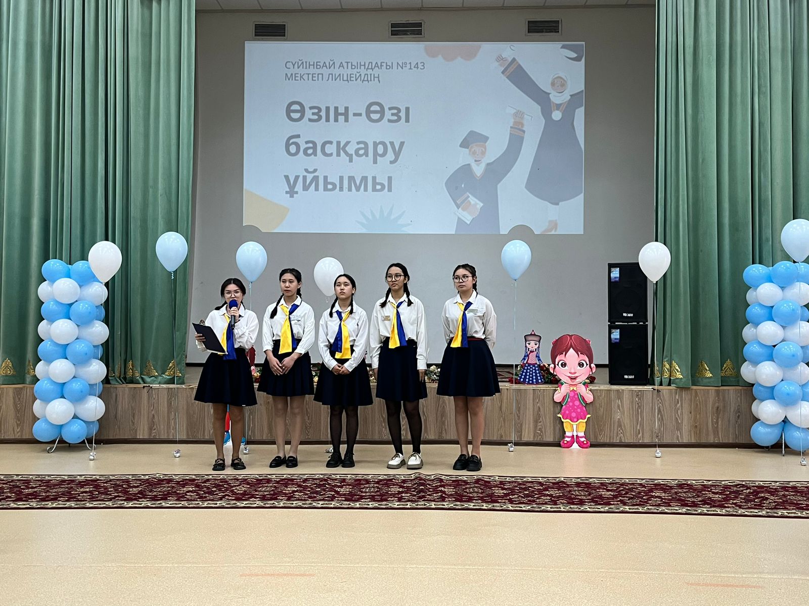 Сүйінбай атындағы №143 мектеп-лицейінде 2023 жылдың 27-қазанында мектеп Президенті мен жаңартылған Мектеп Парламентін салтанатты ұлықтау рәсімі болып өтті