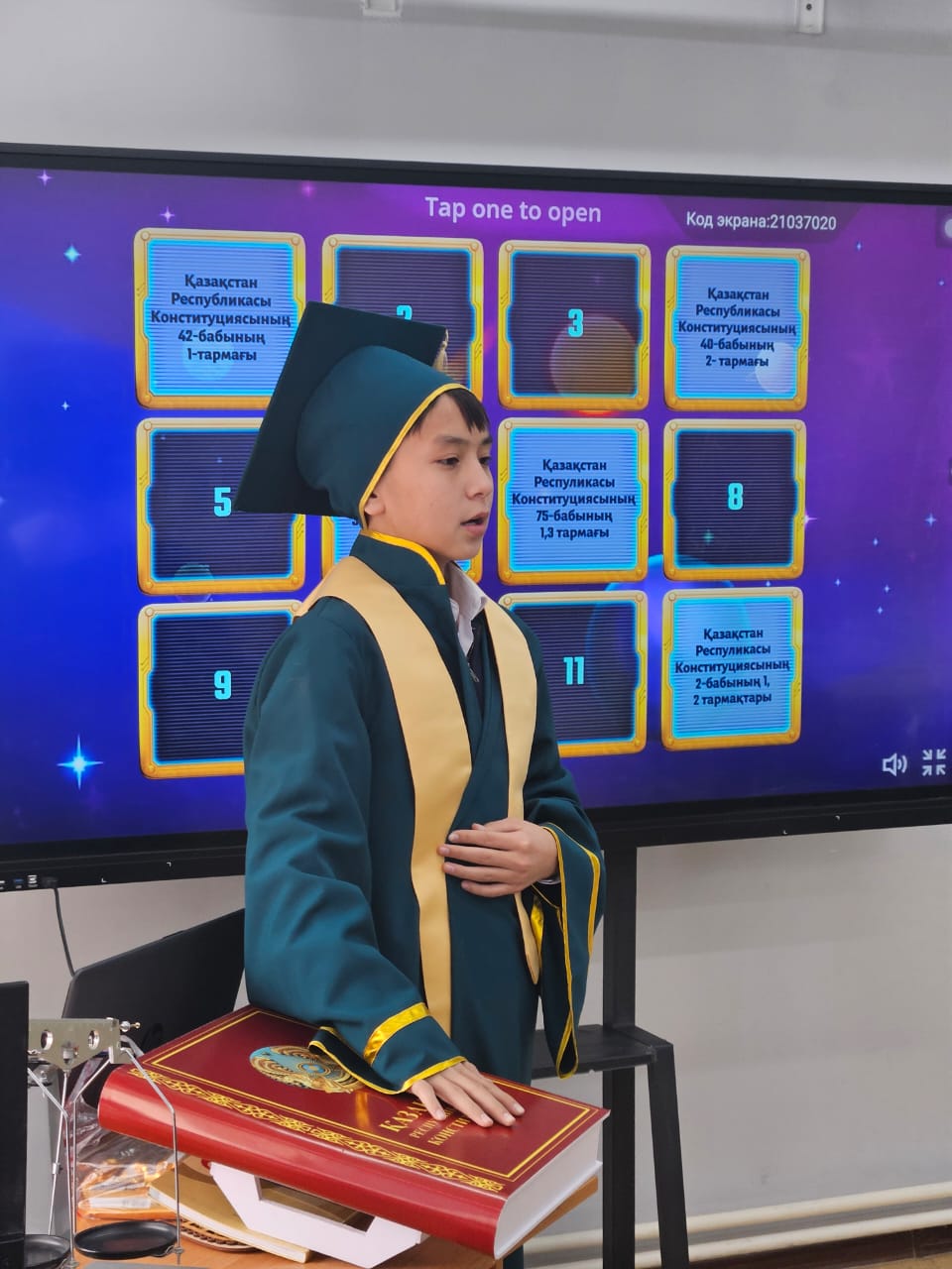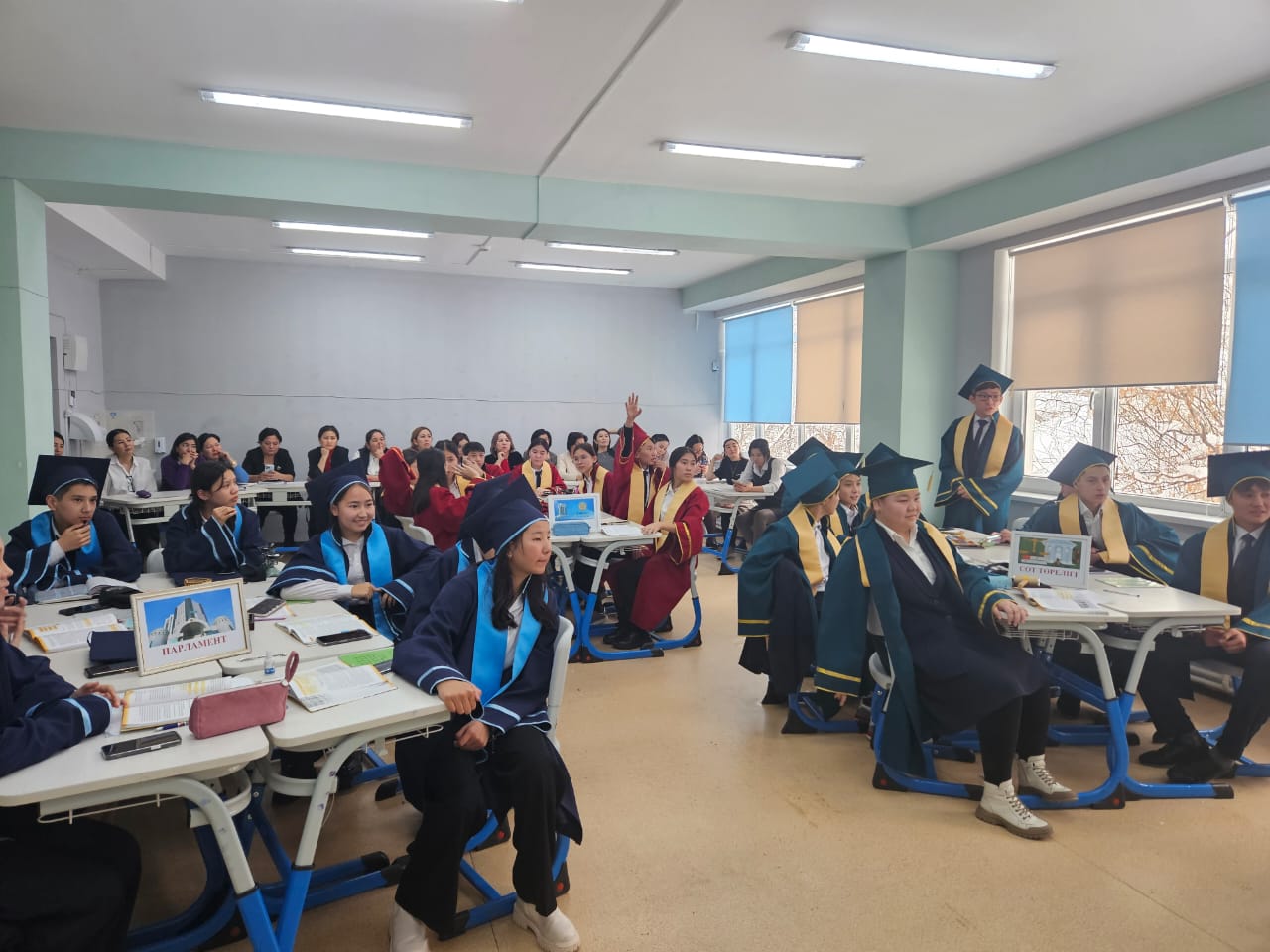 9 «А» сынып оқушыларымен «Тәуелсіз Қазақстан Республикасы- адам құқығы мен еркіндігін ұлықтайтын, әділетті заңдары бар мемлекет» атты тақырыпта ашық сабақ өтілді