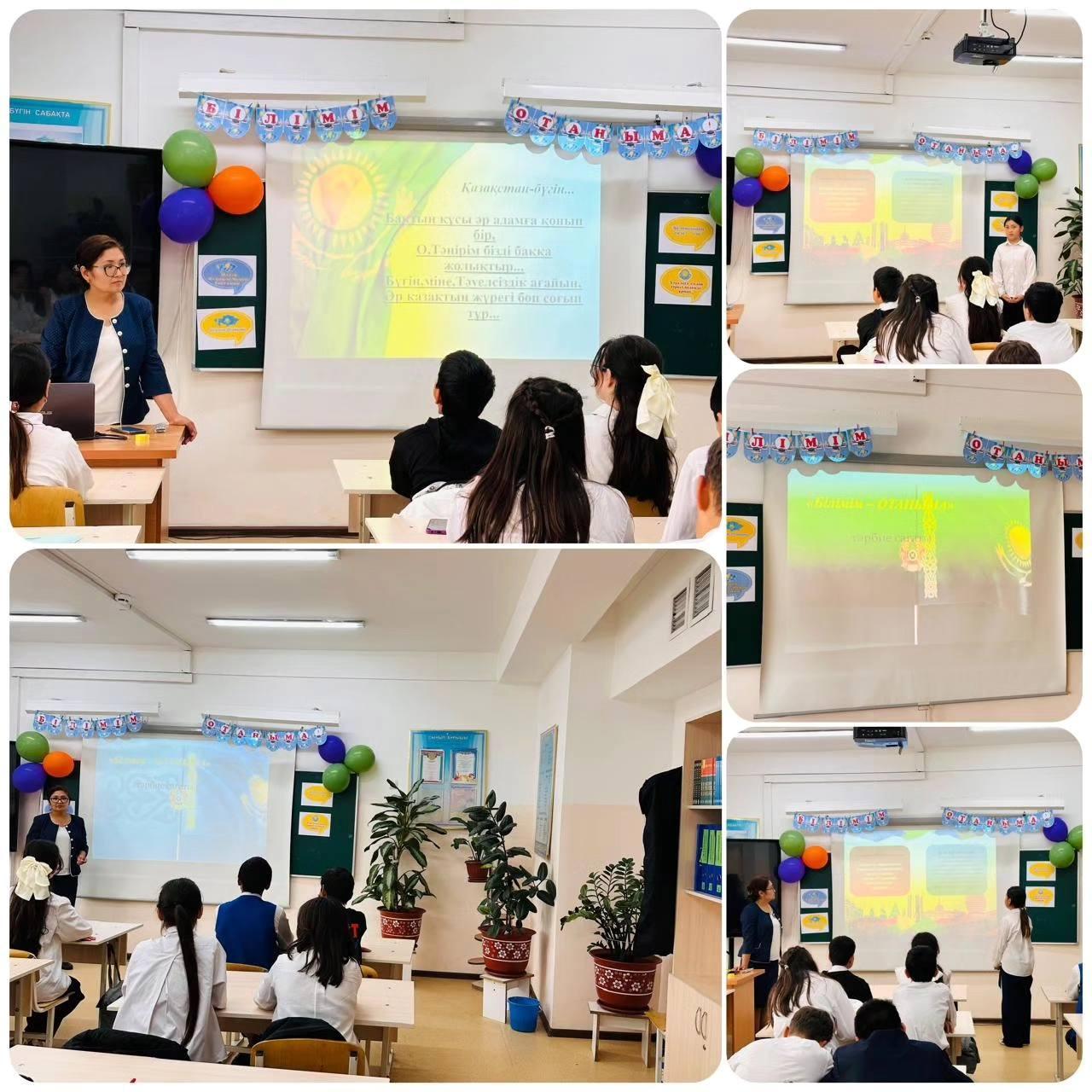 1-11 сынып оқушылары арасында «Білімім- Отаныма» тақырыбында бірыңғай сынып сағаттары болып өтті.