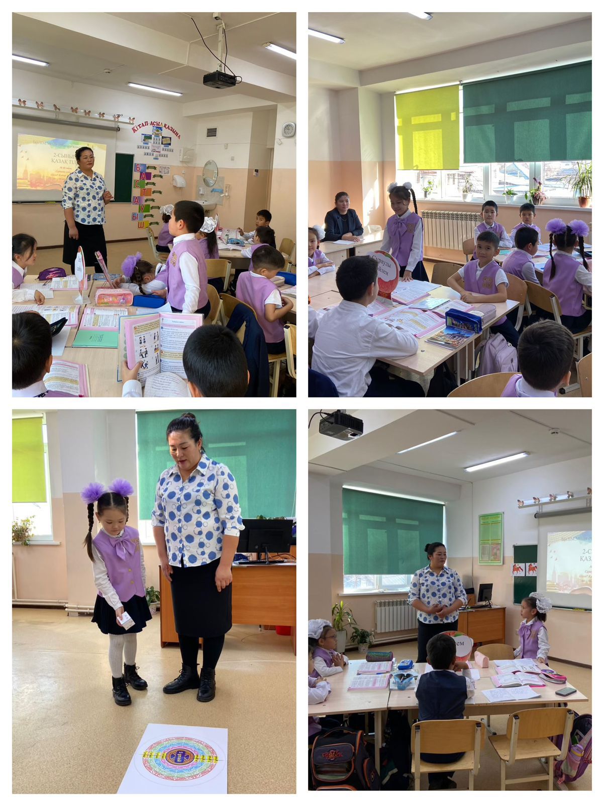Сабақ барысында оқушылардың қызығушылығын арттыру мақсатында түрлі әдіс-тәсілдер қолданылды. Сабаққа балалар белсене қатысты. Пән мұғалімі: Алжанбаева Сәния