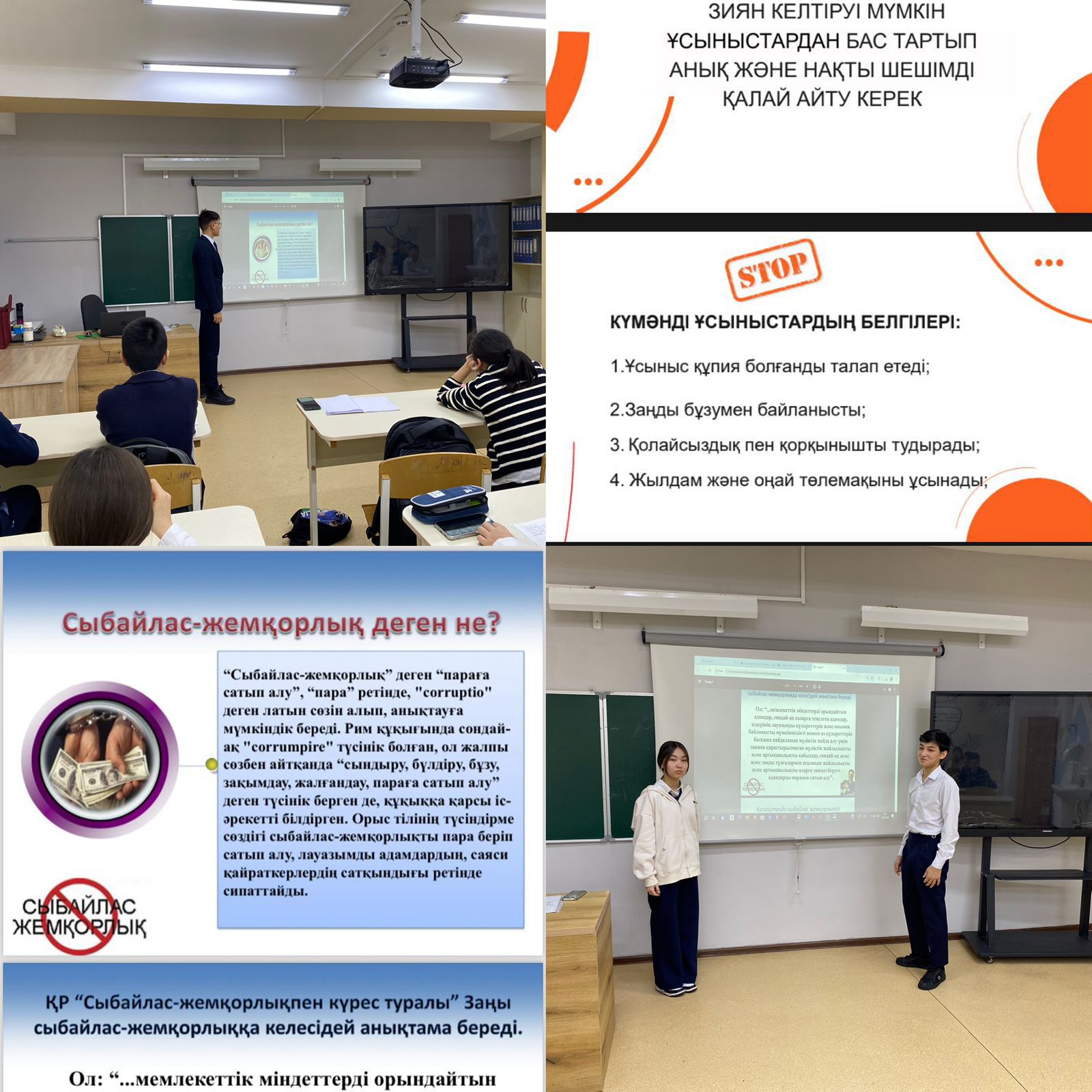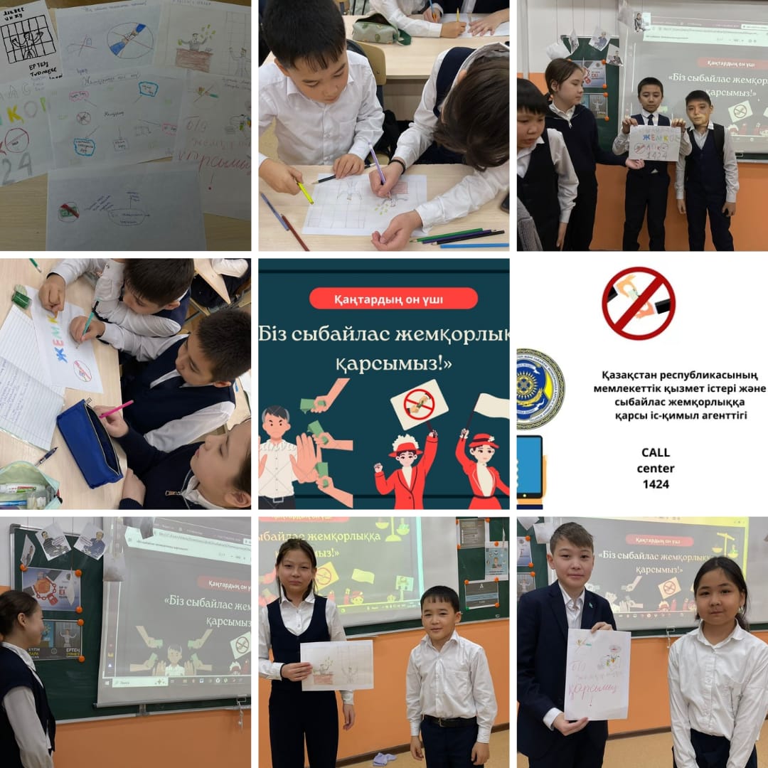 Сүйінбай атындағы #143 мектеп-лицейде 13.01 күні сыныптарда «Біз сыбайлас жемқорлыққа қарсымыз!» тақырыбында тәрбие сағаты өтті.