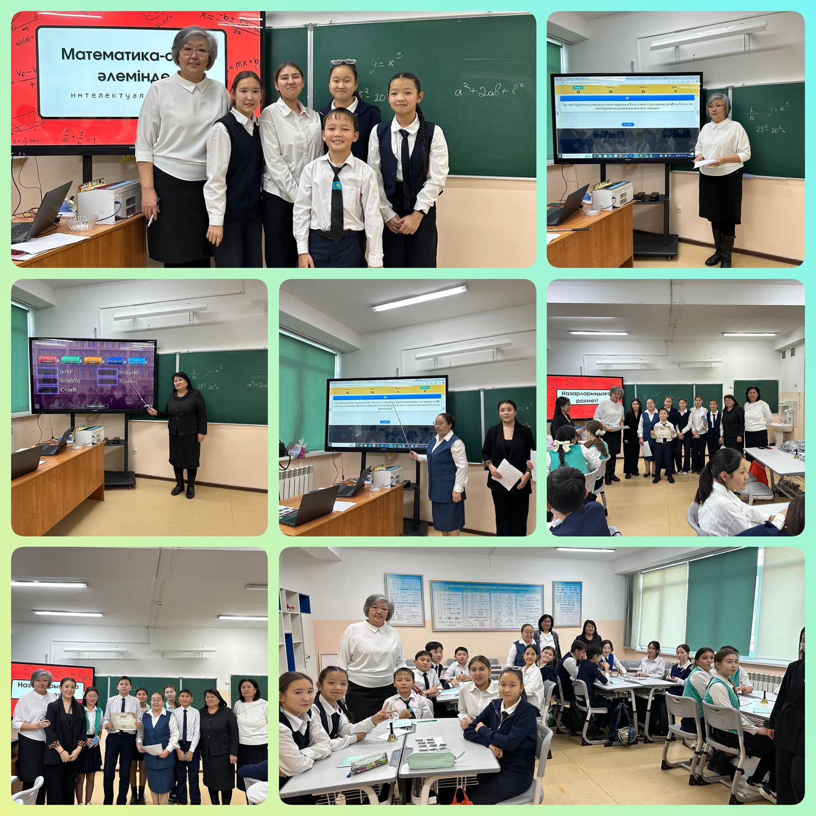Сүйінбай атындағы №143 мектеп- лицейдің 7-ші сынып оқушыларымен балалардың математикаға қызығушылығын арттыру, логикалық ойлау қабілетін дамыту, топпен жұмыс істеуге баулу мақсатында «Математика ойын әлемінде» атты интеллектуалды жарыс өткізілді. Жарысты ұйымдастырушылар, пән мұғалімдері: