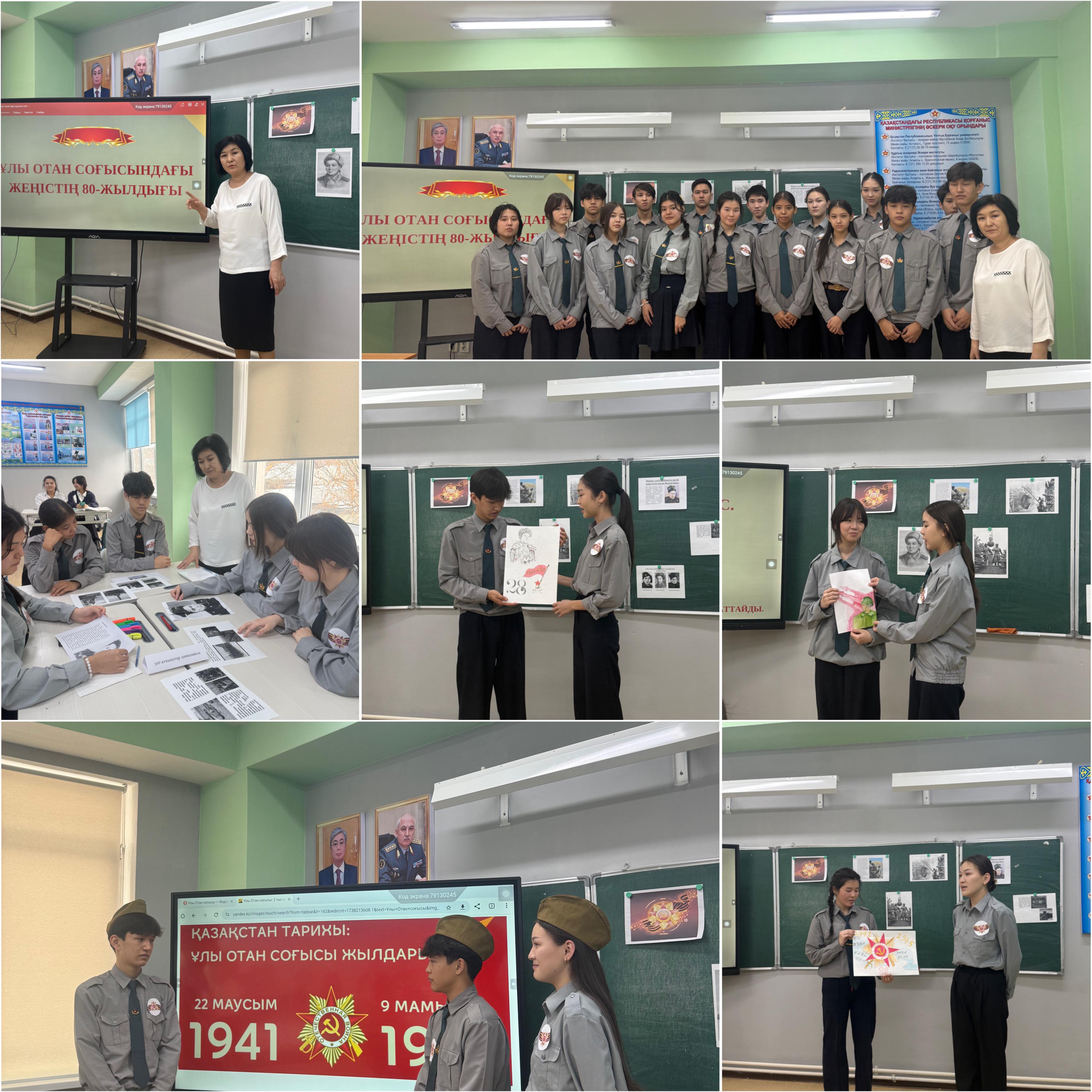 Алматы қаласы,Жетісу ауданы,Сүйінбай атындағы №143мектеп-лицейінде Ұлы Отан соғысының 80-жылдығына орай тарих пәні мұғалімі Шарипова Қарақат Алимхатқызы 10”Б” сыныбымен топтық ізденіс сабағын өткізді.