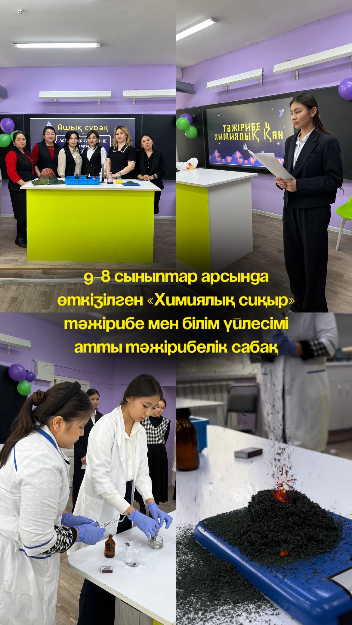 8-9 сынып оқушылары арасында «Химиялық сиқыр: тәжірибе мен білім үйлесімі» атты қызықты тәжірибелік сыныптан тыс іс-шара өтілді.