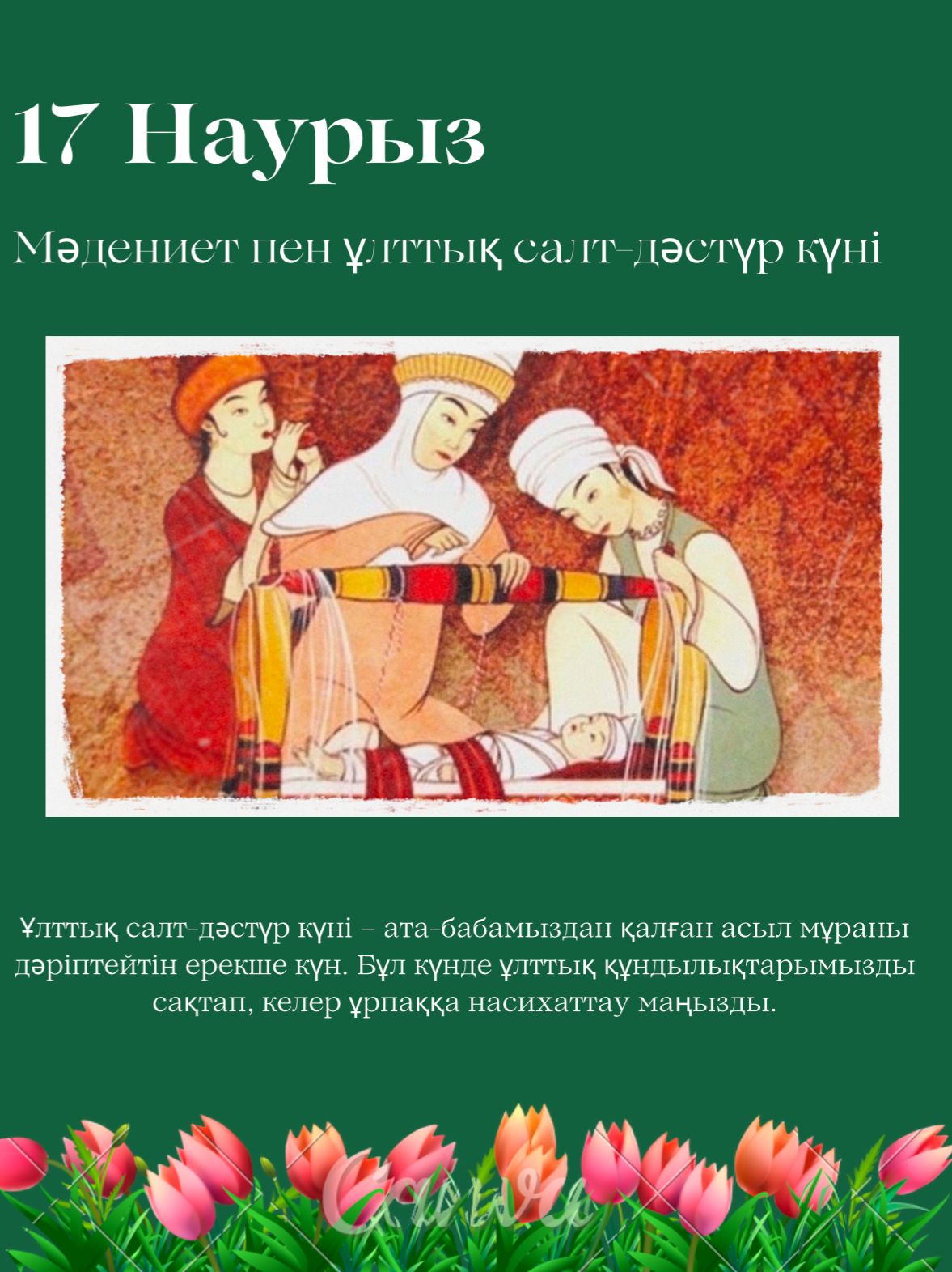 17 наурыз – Мәдениет және ұлттық салт-дәстүр күні.