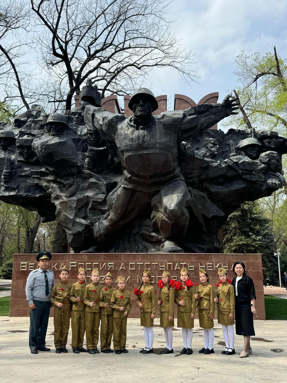 28 Панфиловшы Жауынгерлердің Мемориал Ескерткішіне барып Отан қорғауда жанын қиғандарды 1 минут үнсіздікпен еске алып,соғыс батырлары мен Жеңіс күніне арнап өлең шумақтарын оқып,гүл шоқтарымен тағзым етті.