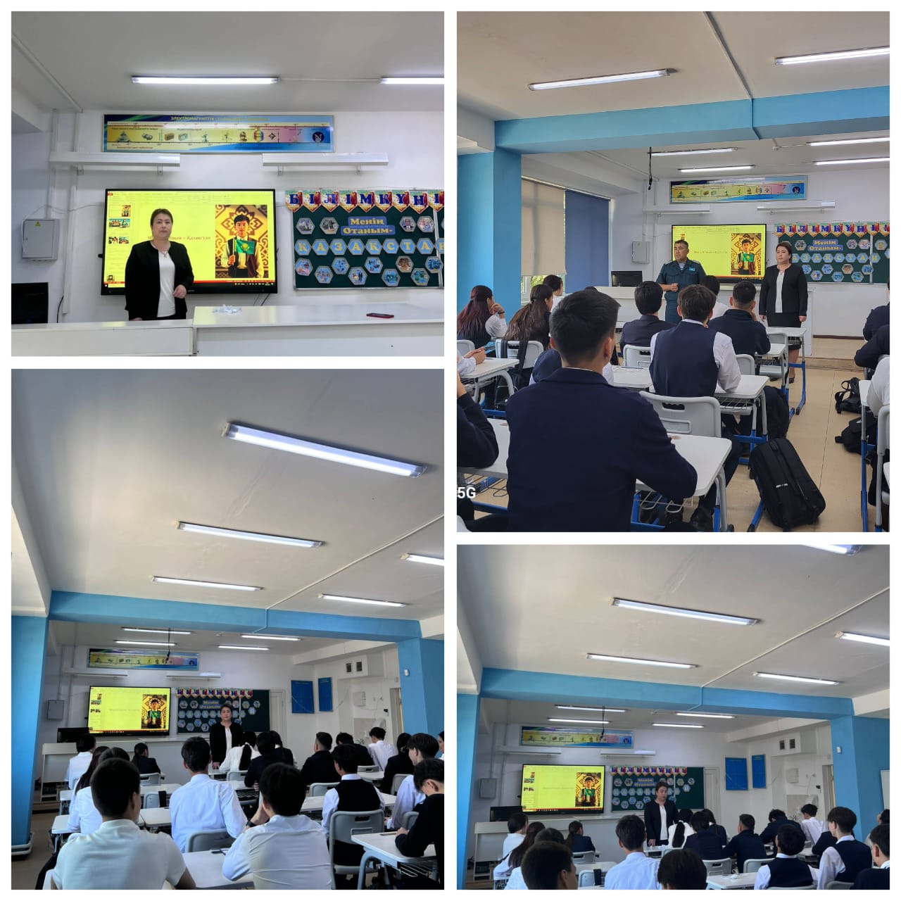 Жетісу ауданы, Сүйінбай атындағы №143 мектеп-лицейінде 2-сынып және 8–11 сыныптар аралығында жаңа оқу жылындағы “Менің Отаным-Қазақстан” тақырыбында алғашқы тәрбие сағаттары өткізілді.