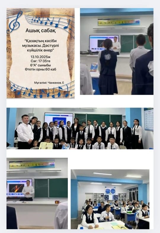 Сабақтың мақсаты: Дәстүрлі күйшілік өнер туралы оқушыларға нақты мағлұмат беру.Білімділік: Күйшілік өнер туралы баяндау арқылы күйді тыңдатып, музыканы сезінуге, түсінуге баулу.Тәрбиелік: Балаларды әсемдікті сезінуге, өз халқының музыкалық мұрасынан эстетикалық ләззат ала білуге баулу. Өнер иелерін үлгі тұтып қастерлеуге тәрбиелеу.Дамытушылық: Ән айту дағдыларын қалыптастыру, музыкалық қабілеттерін арттыру, балалардың шығармашылық белсенділіктерін дамыту.Сабақтың түрі: аралас сабақ.Әдіс – тәсіл: сұрақ – жауап, әңгімелеу.Пәнаралық байланыс: тарих, әдебиет, музыка.Көрнекілік: аспаптар, композитор суреттері, үнтаспа,синтезатор.
