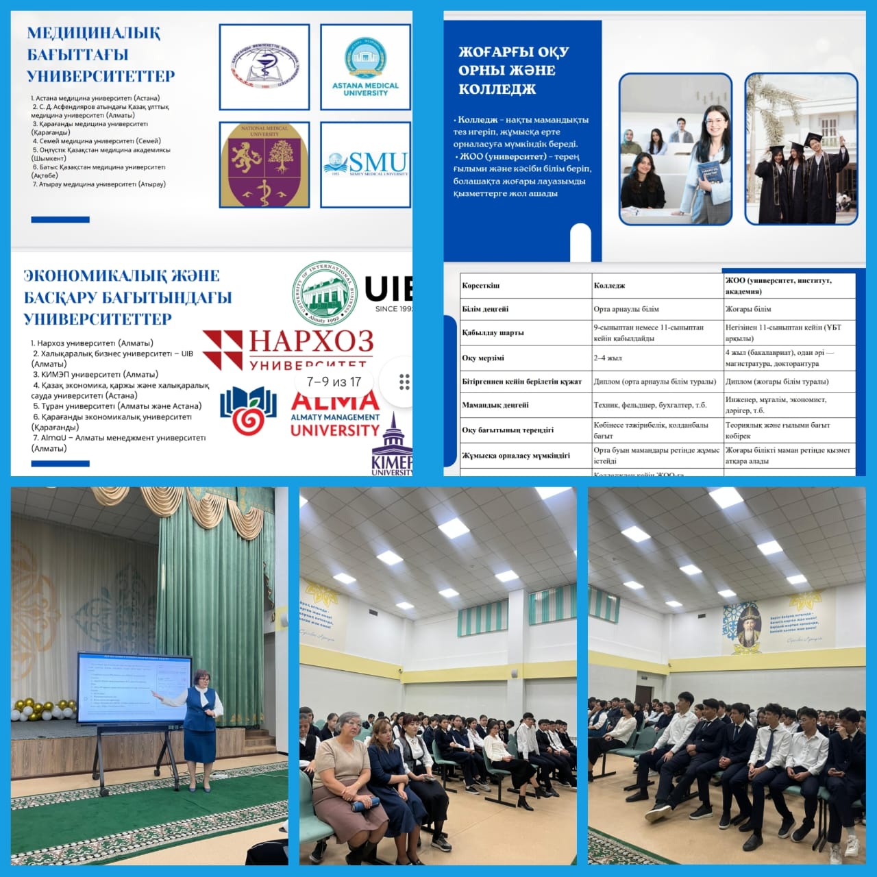 "Кәсіби бағдар – болашағыңның бастауы" атты сынып сағаты болып өтті.