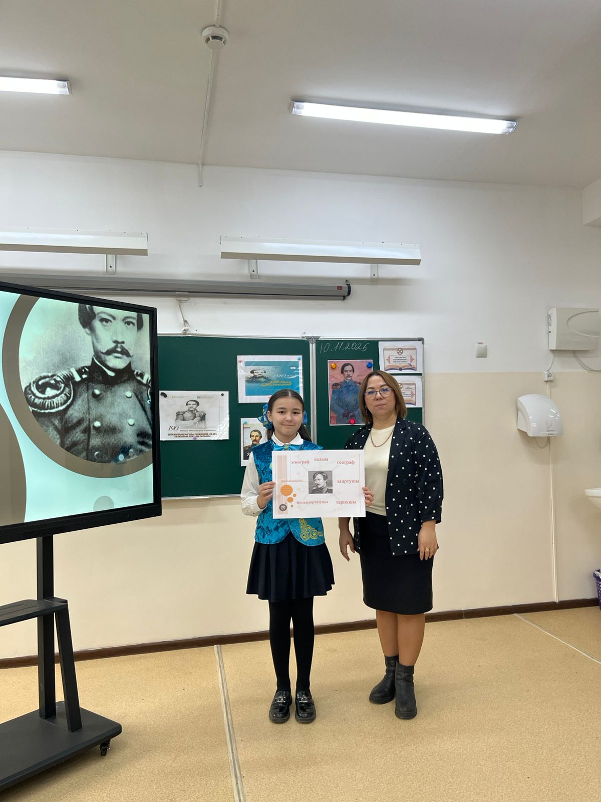 «Адал азамат» біртұтас тәрбие бағдарламасы аясында 6 “А” сыныбында ұлы ғалым, ағартушы Шоқан Уәлихановтың 190 жылдық мерейтойына арналған ашық тәрбие сағаты өткізілді.