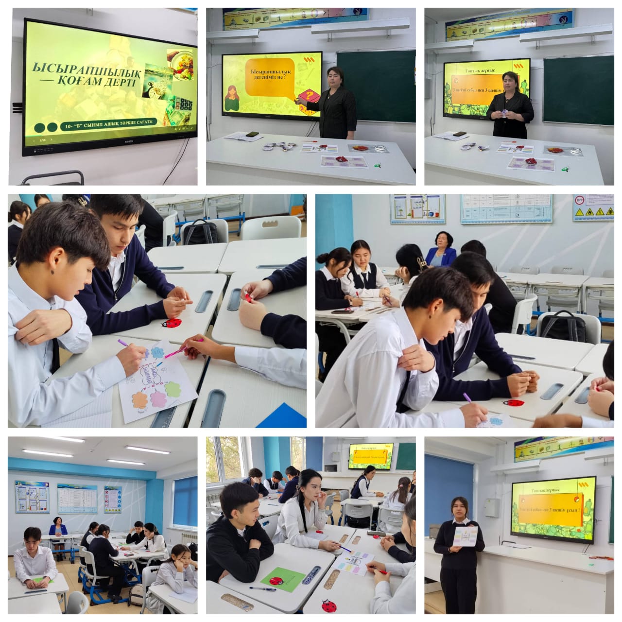 10 «Б» сыныбында «Ысырапшылдық – қоғам дерті» тақырыбында ашық тәрбие сағаты өткізілді. Іс-шара барысында оқушылар ысырапшылдық ұғымының мәнін ашып, тұрмыстағы, тамақтағы және уақыттағы ысыраптың зиянды тұстарын талқылады. Әр топ өз ойларын дәлелдермен жеткізіп, бейнероликтер мен көріністер арқылы өз көзқарастарын көрсетті.