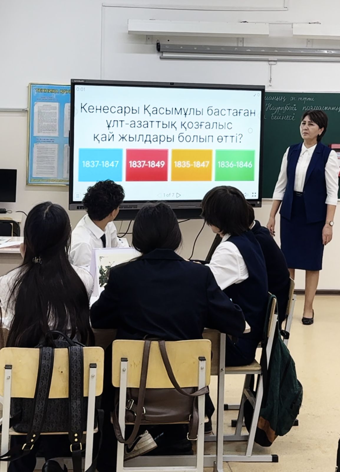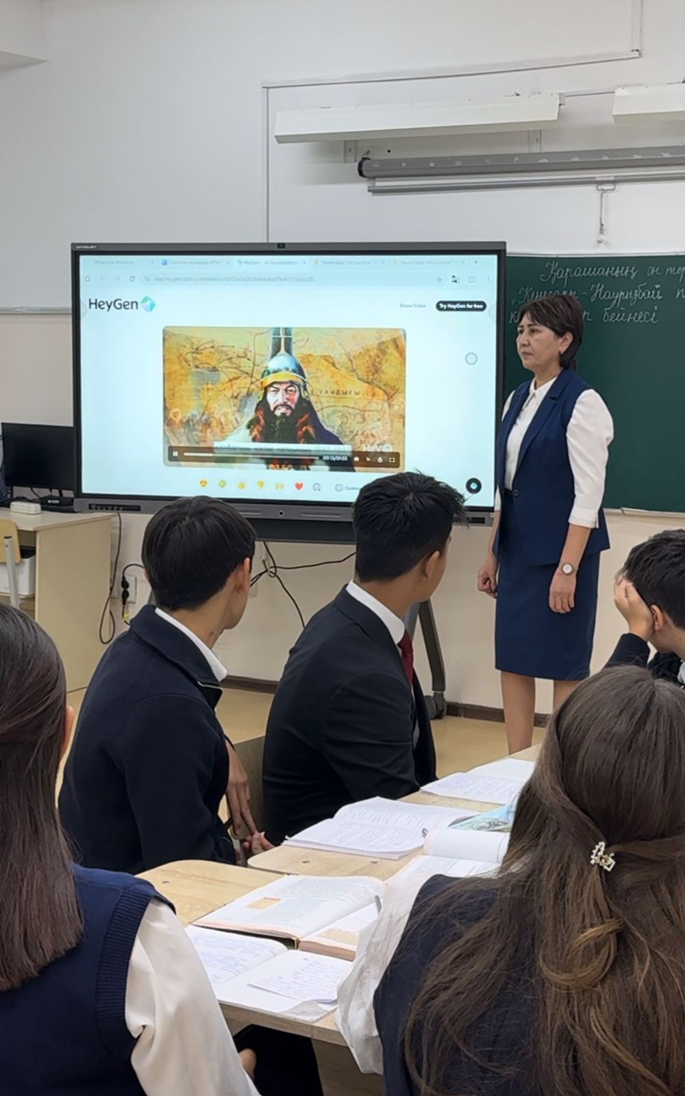 Жаңа сабақ барысында жасанды интеллект арқылы Қасым хан өзінің мұрагері Кенесары батырдың өмірі туралы қысқаша баяндап берді. Оқушылар бейнематериалды ерекше ықыласпен тыңдап, өз ойларымен бөлісті. Сабақ барысында, жеке, топтық, шығармашылық тапсырмалар орындау барысында кейіпкерлерге сипаттама бере отырып, оқушылар ерлік пен батырлық, қиындыққа мойымау, Отансүйгіштік, қайсарлық пен төзімділік сияқты қасиеттерді бойларына сіңіре білді.