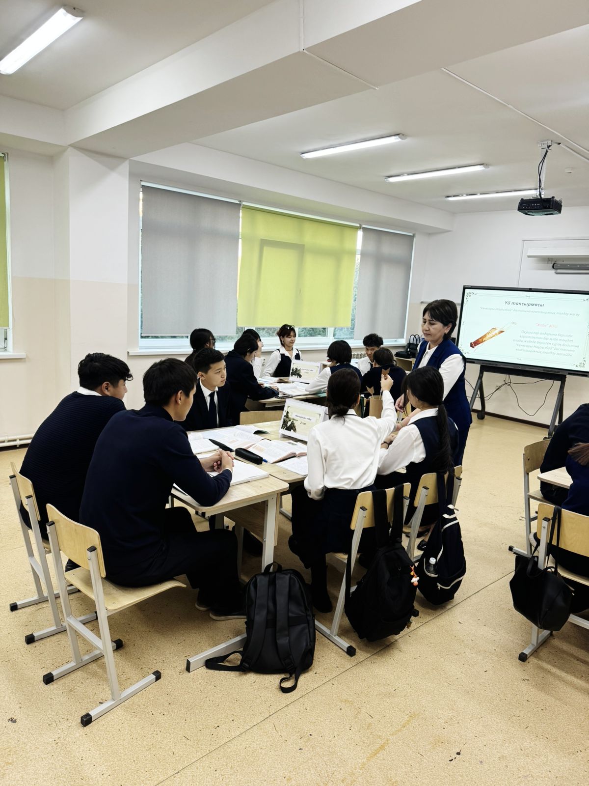 Сабақ барысында пән мұғалімі сабақтың мақсатын ашуда түрлі тапсырмалар ұсынды. Оқушылар поэмадан үзінділер оқи отырып, кейіпкерлер бейнесін жан-жақты аша білді. Сонымен бірге “Кенесары-Наурызбай” дастанының біздің тарихымыз үшін маңызы қаншалықты деп ойлайсың?”-тақырыбында шағын ойтолғау жазып, өздерінің пікірлерін ортаға салды.