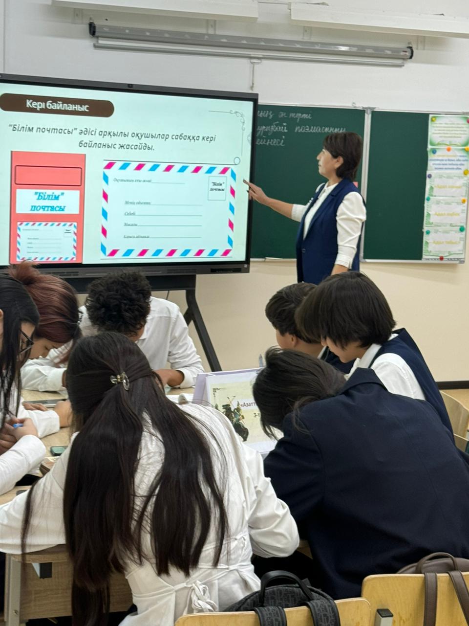 “Білім почтасы” әдісі арқылы кері байланыс берілді. Сабақ өз мақсатына толық жетті, үлгілі сабақ деп танылды.