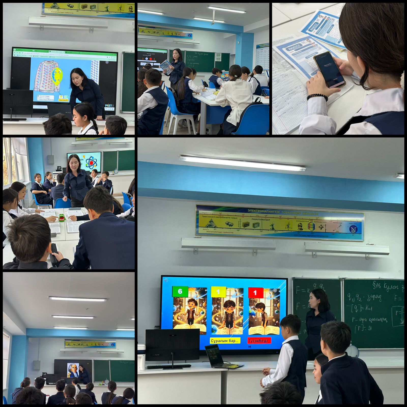 Сүйінбай атындағы 143 мектеп-лицейдің физика пәні мұғалімі Алтайқызы Маржан "Тәлімгер- тәжірибе мен білімнің көпірі" айлығында 8"б" сыныбымен "Кулон заңы" тақырыбында ашық сабақ өтті. Ашық сабақта ЖИ құралдары, көрнекілітер, оқушы парағы қолданылды. Сабақ барысында оқушылар жеке, жұптық, топтық тапсырмалар орындады. Сабақ өз мақсатына толық жетті, үлгілі сабақ деп танылды.