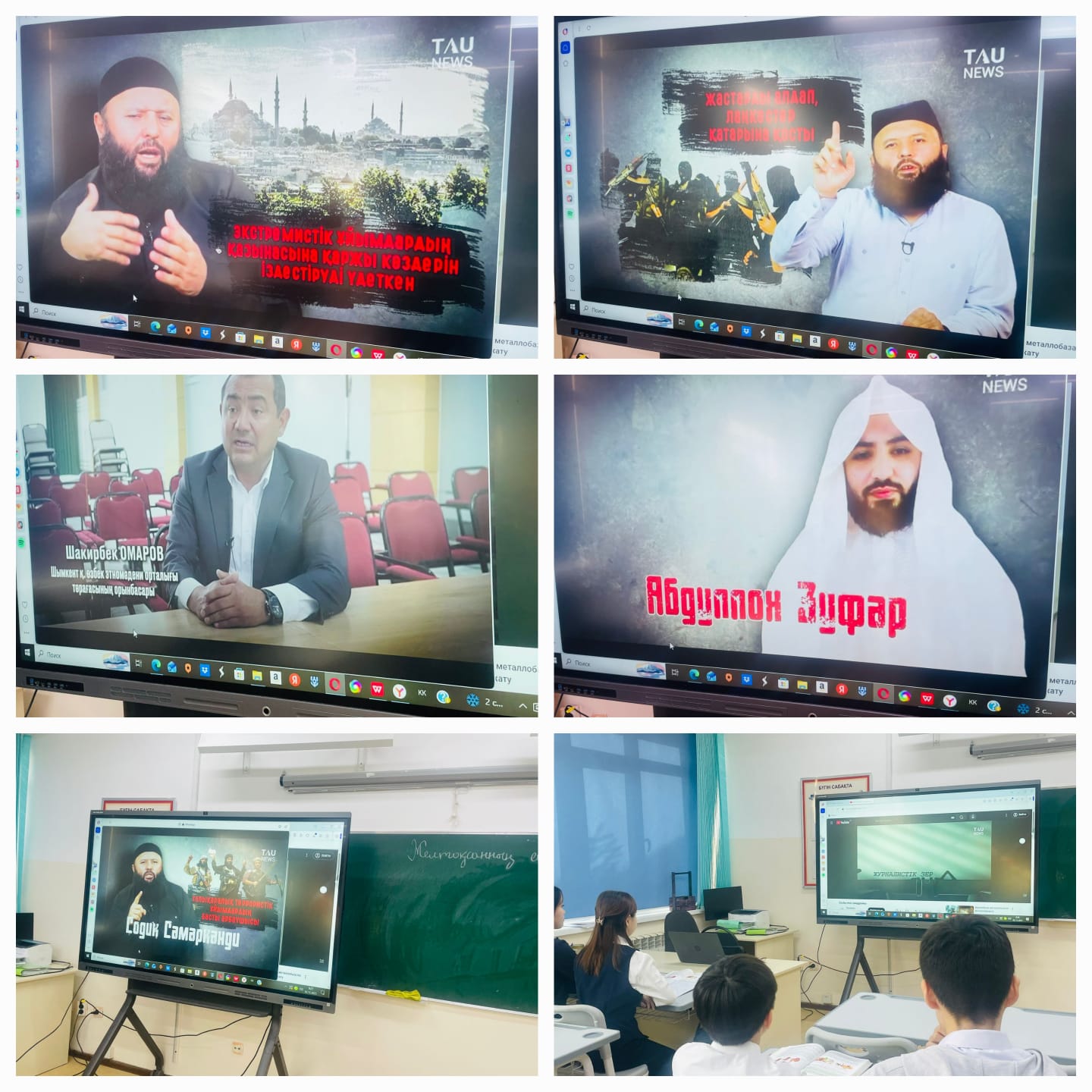 8–11 сынып оқушыларына терроризм мен экстремизмнің алдын алуға бағытталған бейнероликтер көрсетілді.