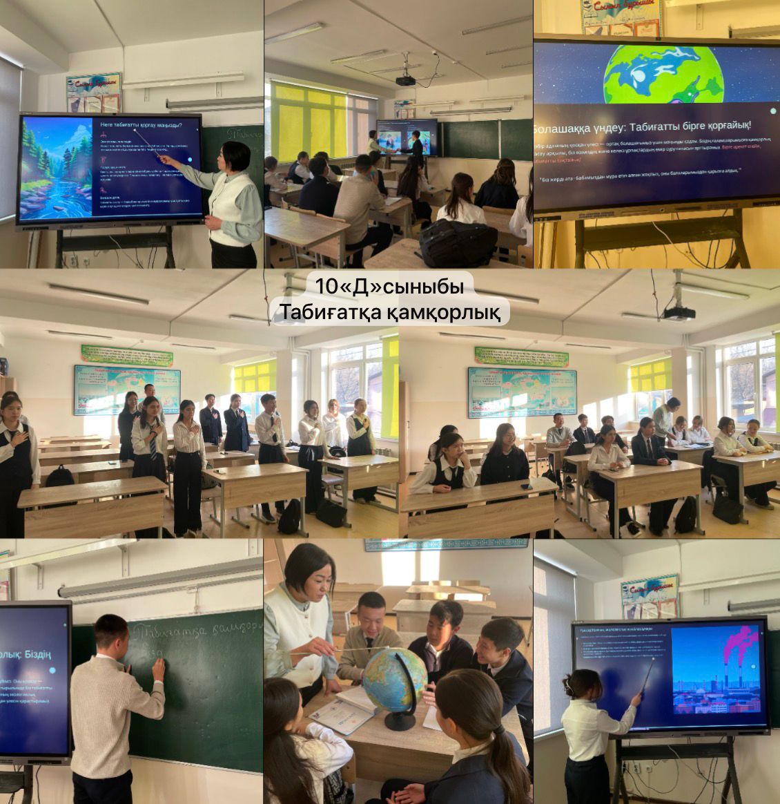 10 «Д» сыныбында «Табиғатқа қамқорлық» тақырыбында тәрбие сағаты өткізілді. Іс-шара барысында оқушыларға табиғатты қорғаудың маңызы, экологиялық мәдениетті қалыптастыру жолдары, қоршаған ортаны сақтау бойынша атқарылатын нақты іс-әрекеттер түсіндірілді.