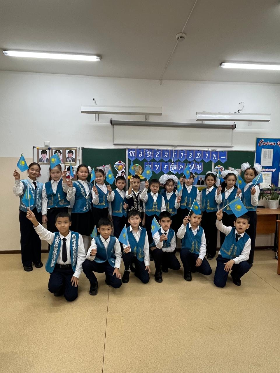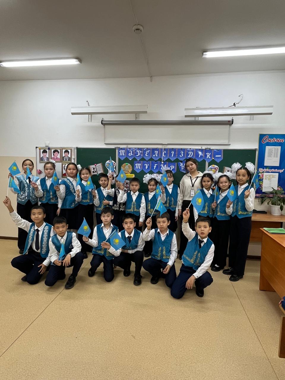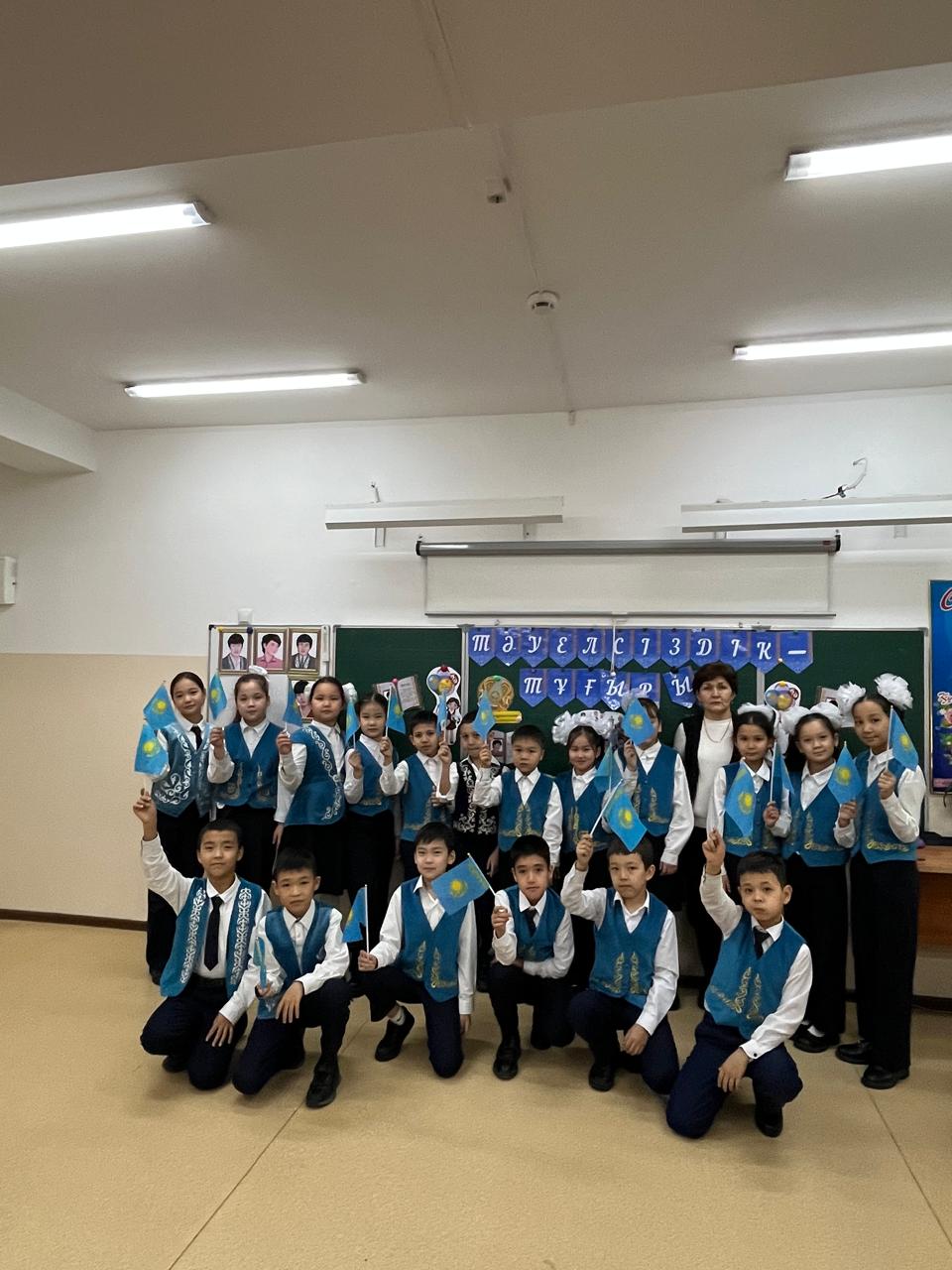 Сүйінбай атындағы №143 мектеп-лицейдің 4”Д”сынып оқушыларымен “Тәуелсіздік-тұғырым”тақырыбында тәрбие сағаты болды.Тәрбие сағатының мақсаты:Оқушыларға Қазақстан Республикасының Тәуелсіздігі туралы түсінік беру,оның маңызын ұғындыру,елжандылыққа ,Отансүйгіштікке тәрбиелеу.Тарихи оқиғаларға құрметпен қарауға баулу.Сынып жетекшісі:Тузилова Н.А