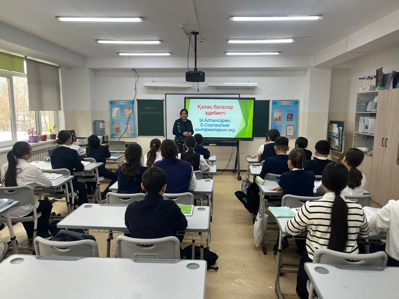 Қазақ әдебиеті балалар айлығы аясында кітап оқитын клубтың жұмыс жоспарына сәйкес оқушылар арасында қазақ балалар әдебиетінің көрнекті өкілдері Ыбырай Алтынсарин мен Бердібек Соқпақбаевтың шығармаларына талдау жүргізілді.