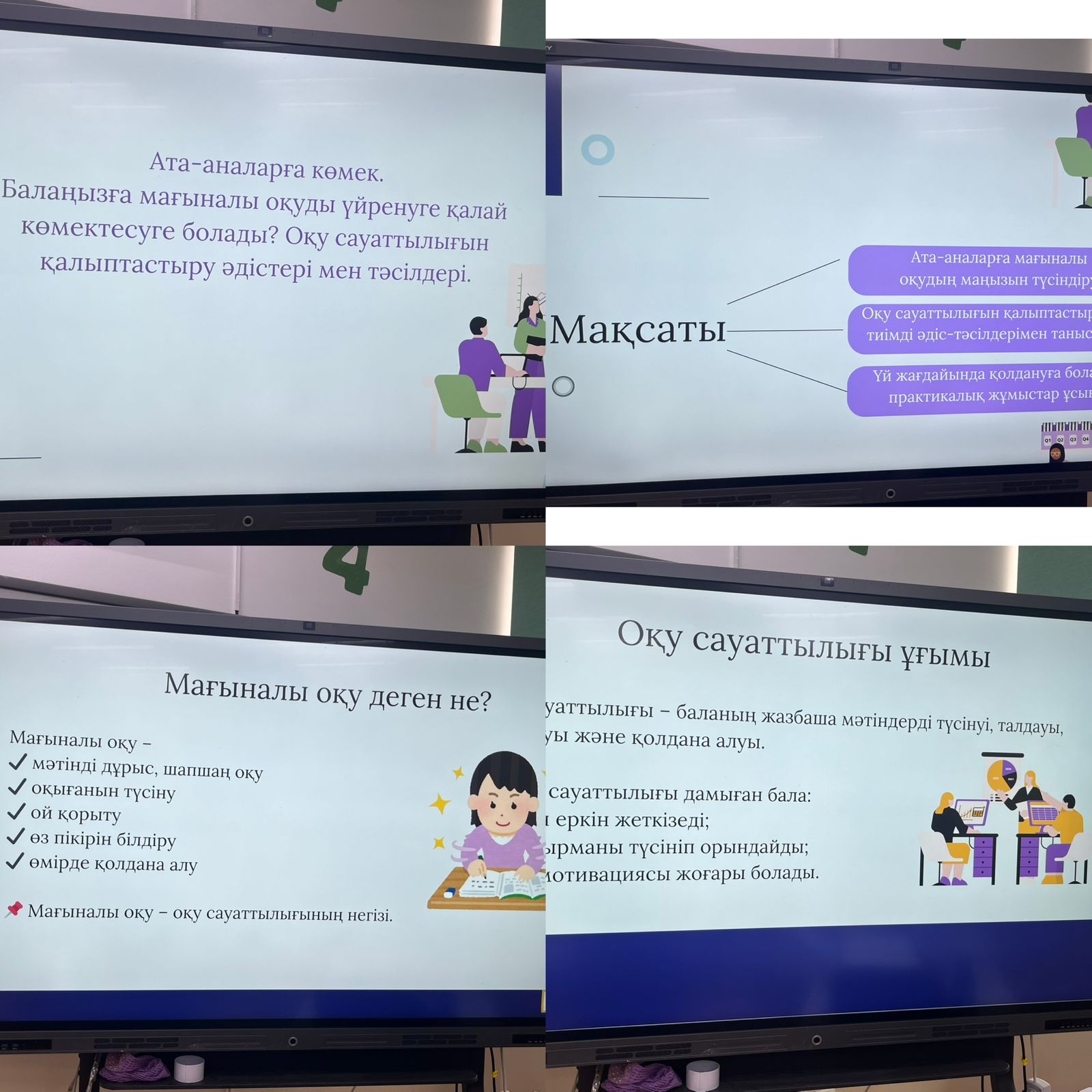 Ата-аналарға баланың оқу сауаттылығын дамыту жолдарын көрсету, мағыналы оқуға үйде көмектесудің тиімді әдістерімен таныстыру.