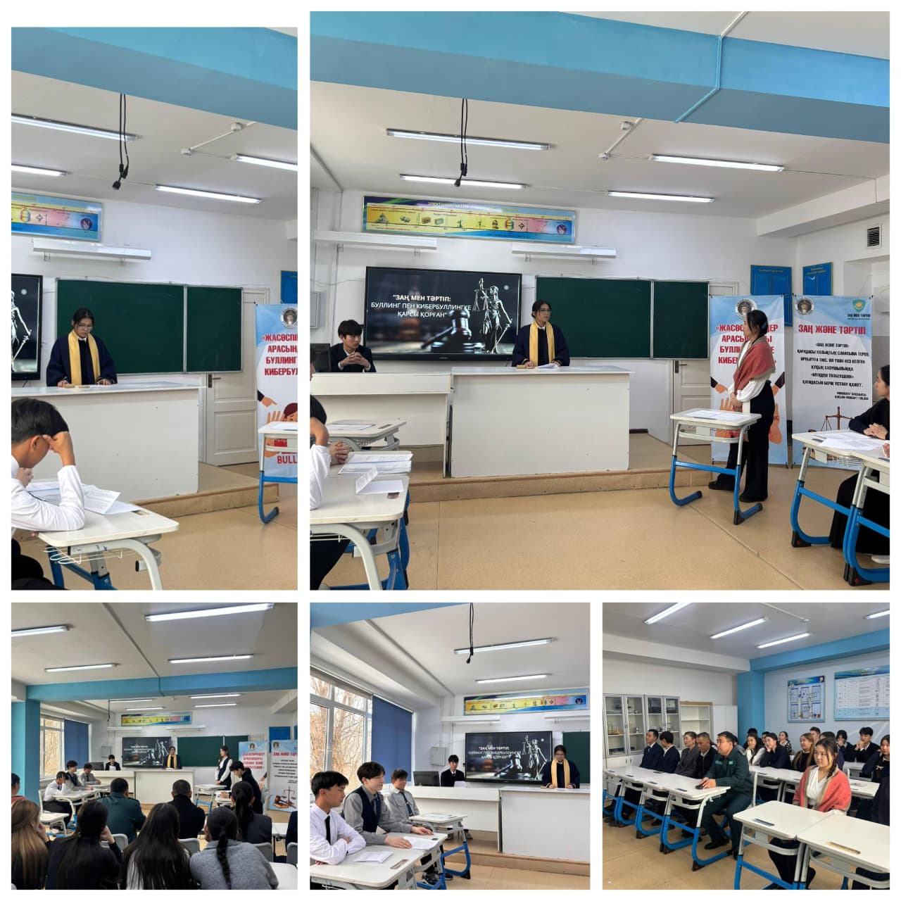 Сүйінбай атындағы №143 мектеп-лицейде 10-сынып оқушылары арасында «Жасөспірімдер арасындағы кибербуллинг және құқықтық мәдениет» тақырыбында танымдық сот процесінің үлгілік іс-шарасы өткізілді.
