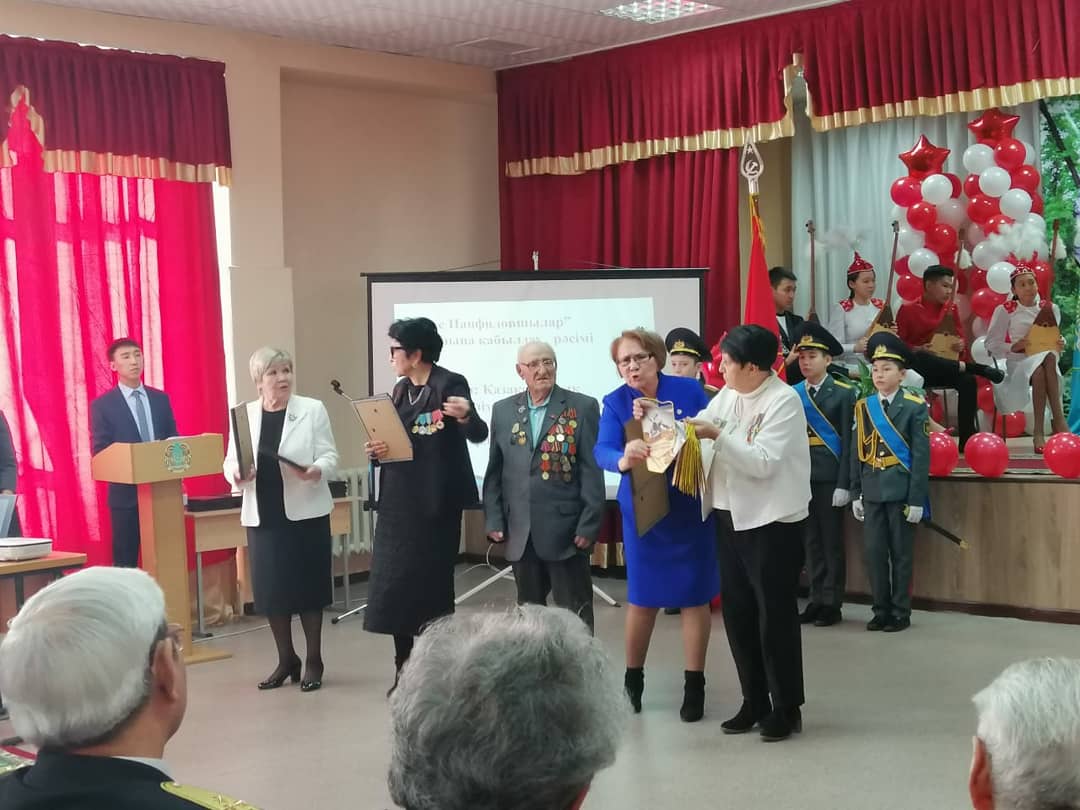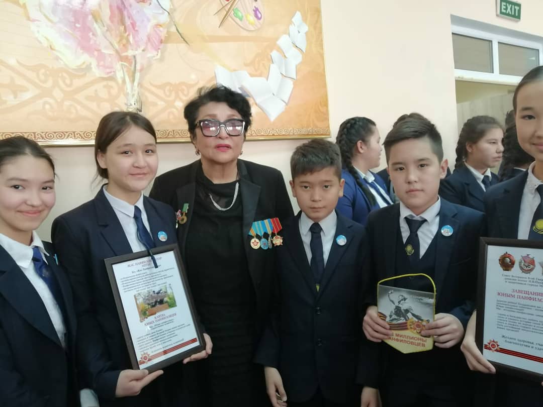 Бүгін № 110 мектеп-гимназиясында өткен «Жас панфиловшылар» қатарына қабылдануына арналған іс-шара өтті. Іс-шараға мектебіміздің 7"А"сынып оқушылары қатысып қайтты. Аталған іс-шараға Иван Васильевич Панфиловтың немерелері Айгүл мен Алуа Бақытжанқыздары, Алматы қаласының ардагерлер кеңесі басшылары, Ресей Федерациясы консулдығының өкілдері, аудандық ардагерлер кеңестерінің төрағалары, ауданымыздың ардагерлері мен зейнеткерлері сонымен қатар мәслихат депутаты Қайрат Құдайберген қатысты.