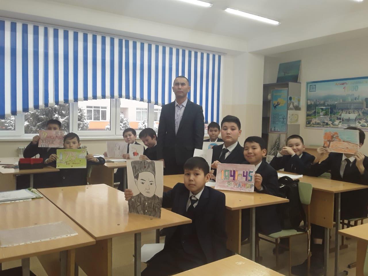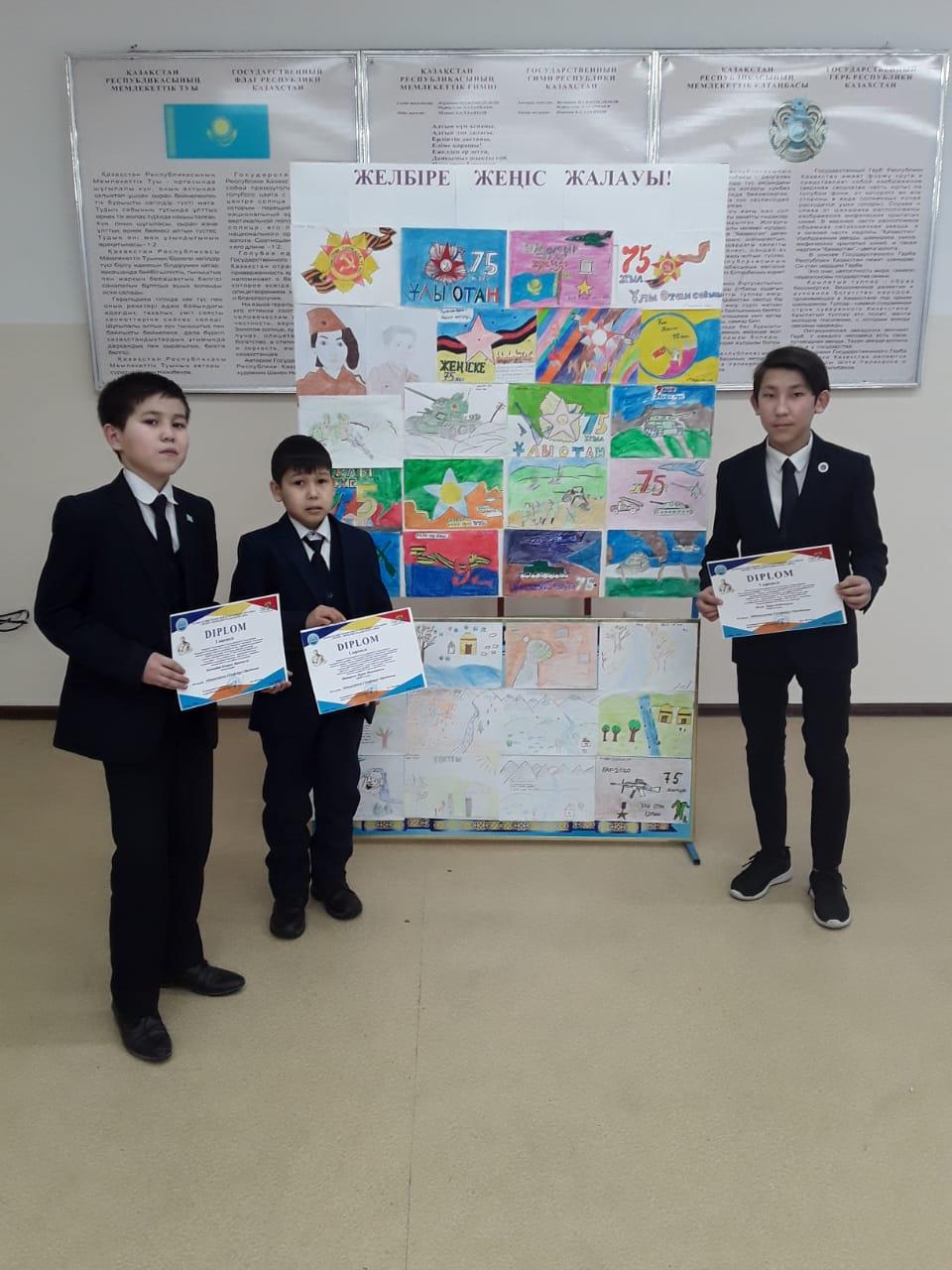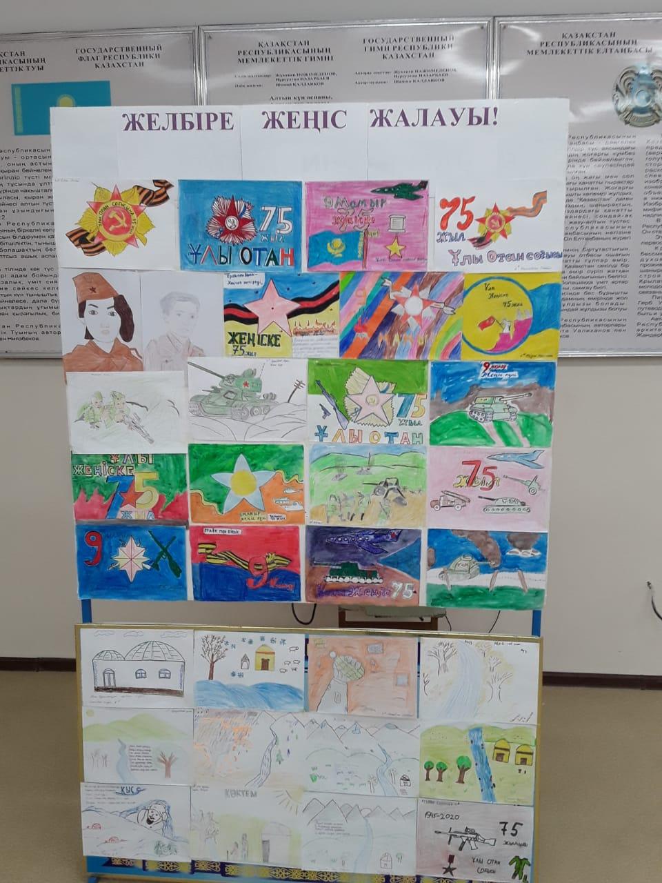 Сүйінбай атындағы №143мектеп-лицейде Көркем еңбек пәнінің мұғалімі М.Нұрғожаевтың ұйымдастыруымен биыл Ұлы Отан соғысы басталғанына 75 жыл толуына орай "Желбіре жеңіс жалауы!"тақырыбында сурет көрмесін ұйымдастырды.