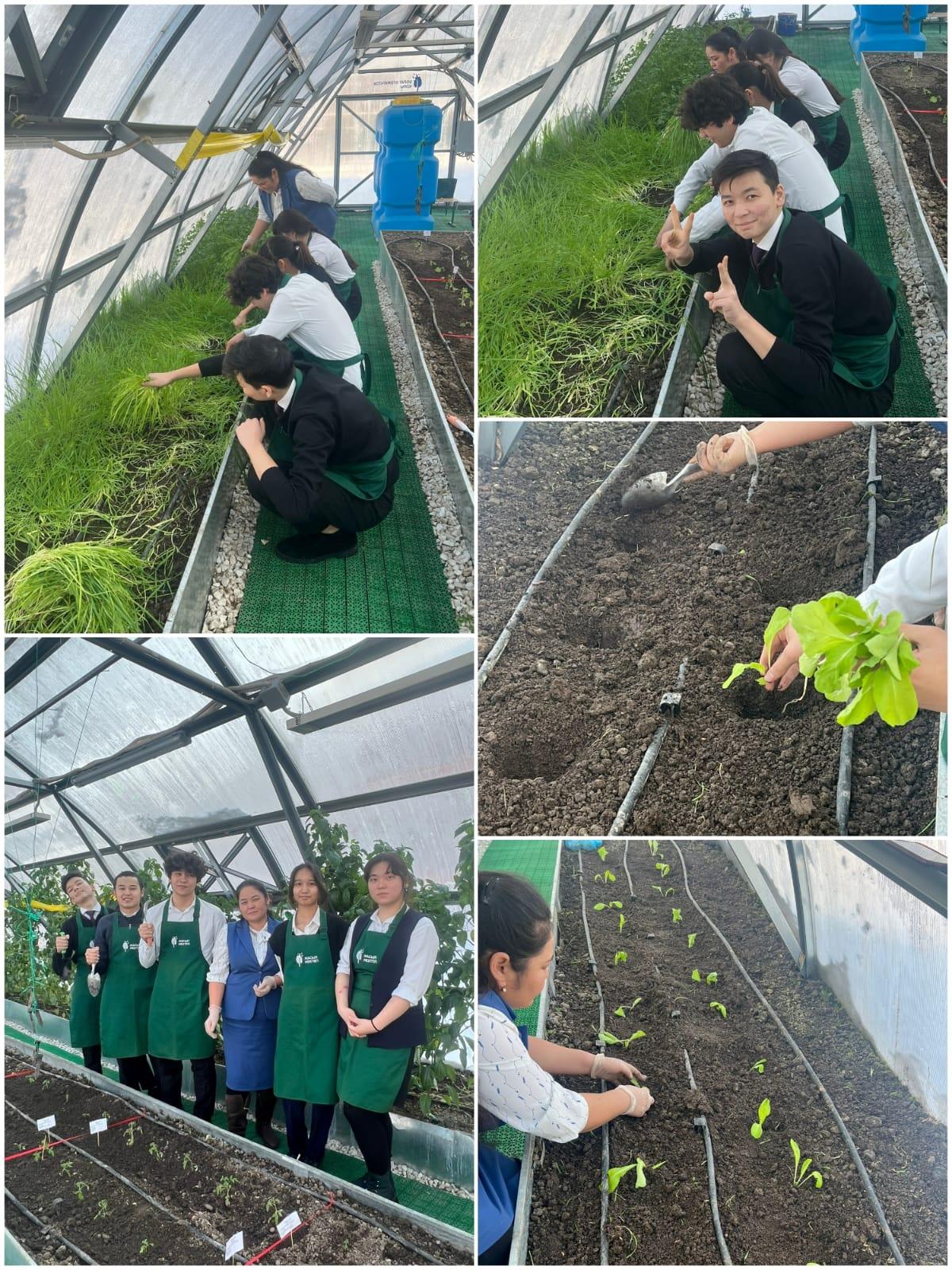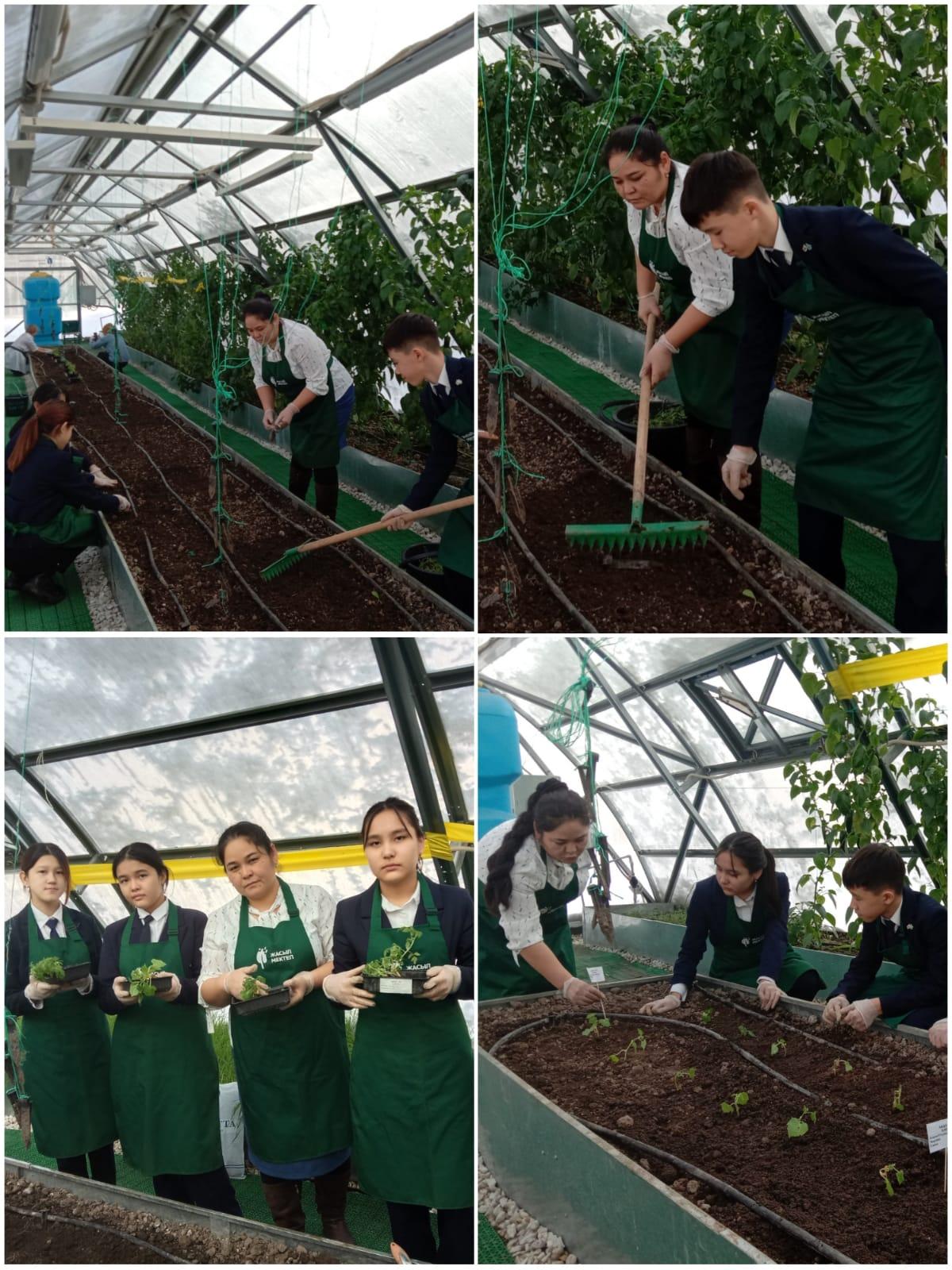 мектеп оқушылары мен бірге қыстық демалыстан кейін көкөністердің (қияр, қызанақ, капуста, аскөк т. б) көшетін және тұқымдарын отырғызды.
