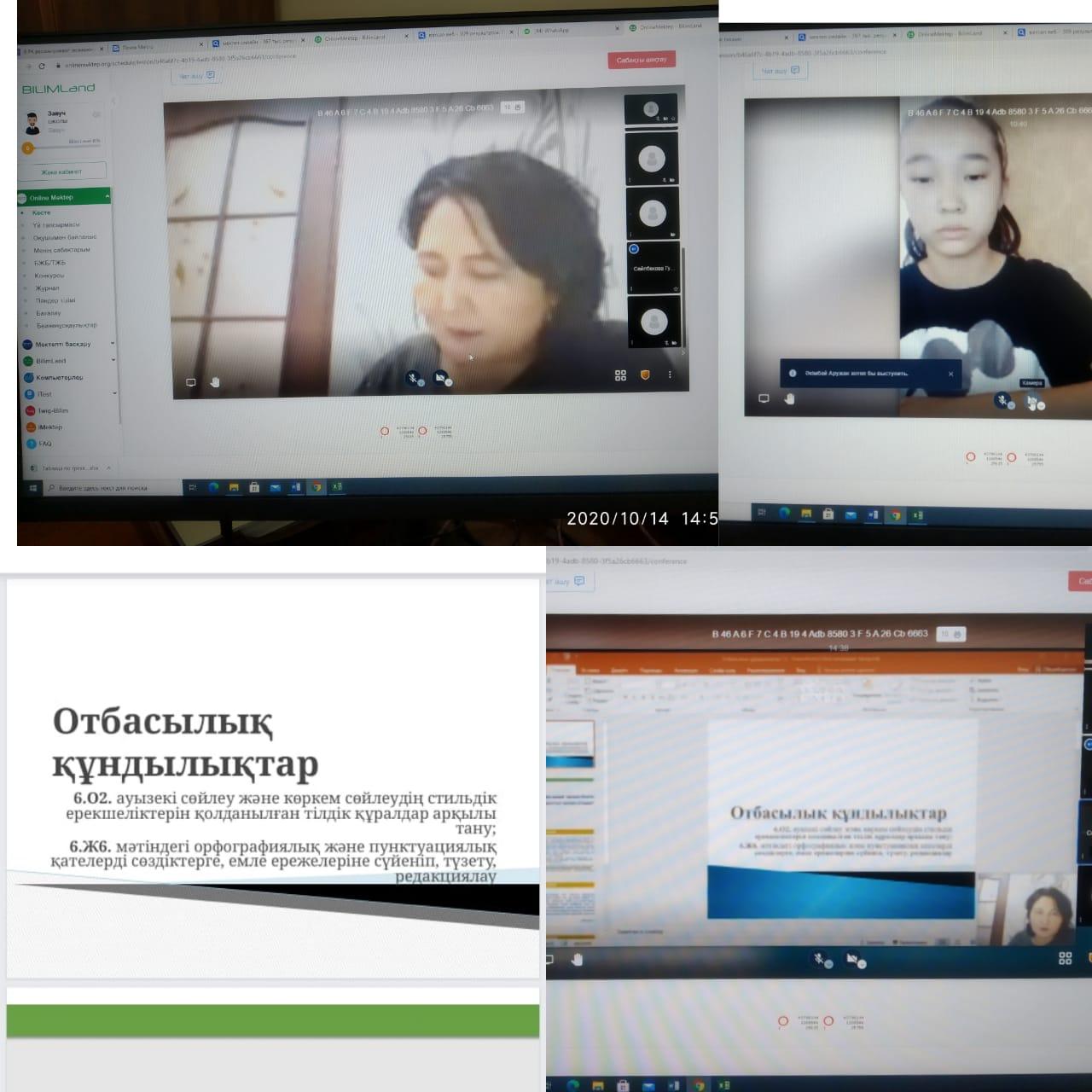 Сүйінбай атындағы №143 мектеп-лицейдің жоспарына сәйкес қашықтан оқыту кезінде пән мұғалімдерінің оқу платформаларын пайдалануын қадағалау мақсатында мектеп әкімшілігі қазақ тілі мен әдебиеті пәнінің мұғалімі Сейілбекова Гүлбахша Қуаныштайқызының 6 "А" сыныбымен өткен сабағына қашықтан қатысты.