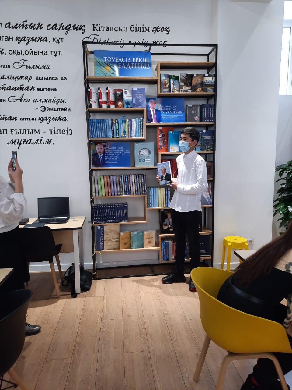 Сүйінбай атындағы №143 мектеп-лицей оқушылары Жамбыл атындағы жасөспірімдер кітапханасында Қазақстан Республикасының Тәуелсіздігінің 30 жылдығына байланысты "Тәуелсіз еркін елденбіз" атты кітап көрмесіне қатысып, еліміздің белгілі спикерлері дәрігер Мыңжылқы Бердіқожаев, , кәсіпқой боксшы Айдос Ербосынұлы, тарихшы Данияр Диханбаев, вилончист Бағжан Октябрь, әнші Әли Оқаповқа оқушыларымыз ойларында жүрген сұрақтарын қойып қажетті жауаптарын алды. Кеш соңында ойын ұйымдастырылып, оқушыларымыз сый-сияпаттарға ие болды және қонақтармен естелікке суретке түсті.