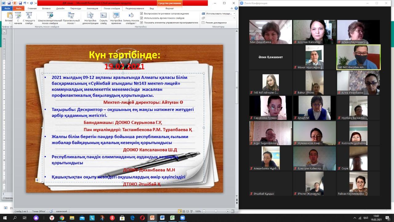 №143 Сүйінбай атындағы мектеп-лицейдің жоспарына сәйкес, . Күн тәртібінде:
