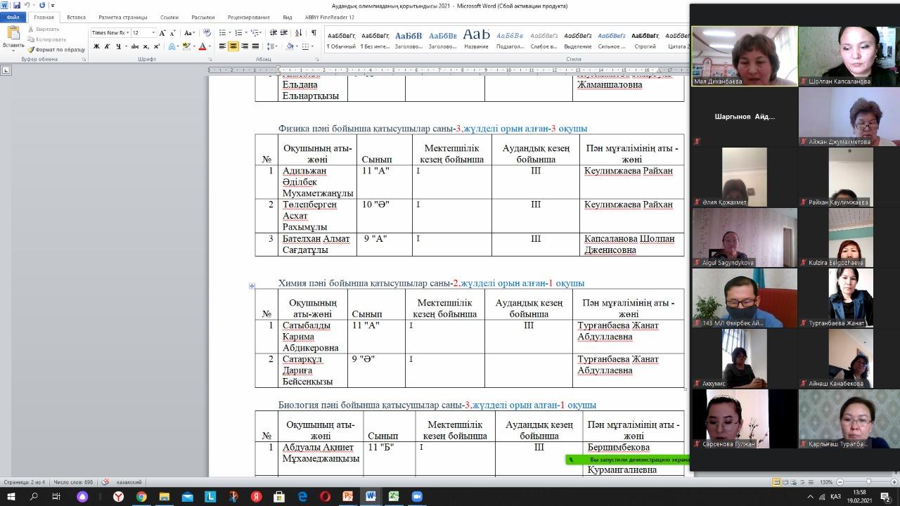 4.Республикалық пәндік олимпиаданың аудандық кезеңнің қорытындысы