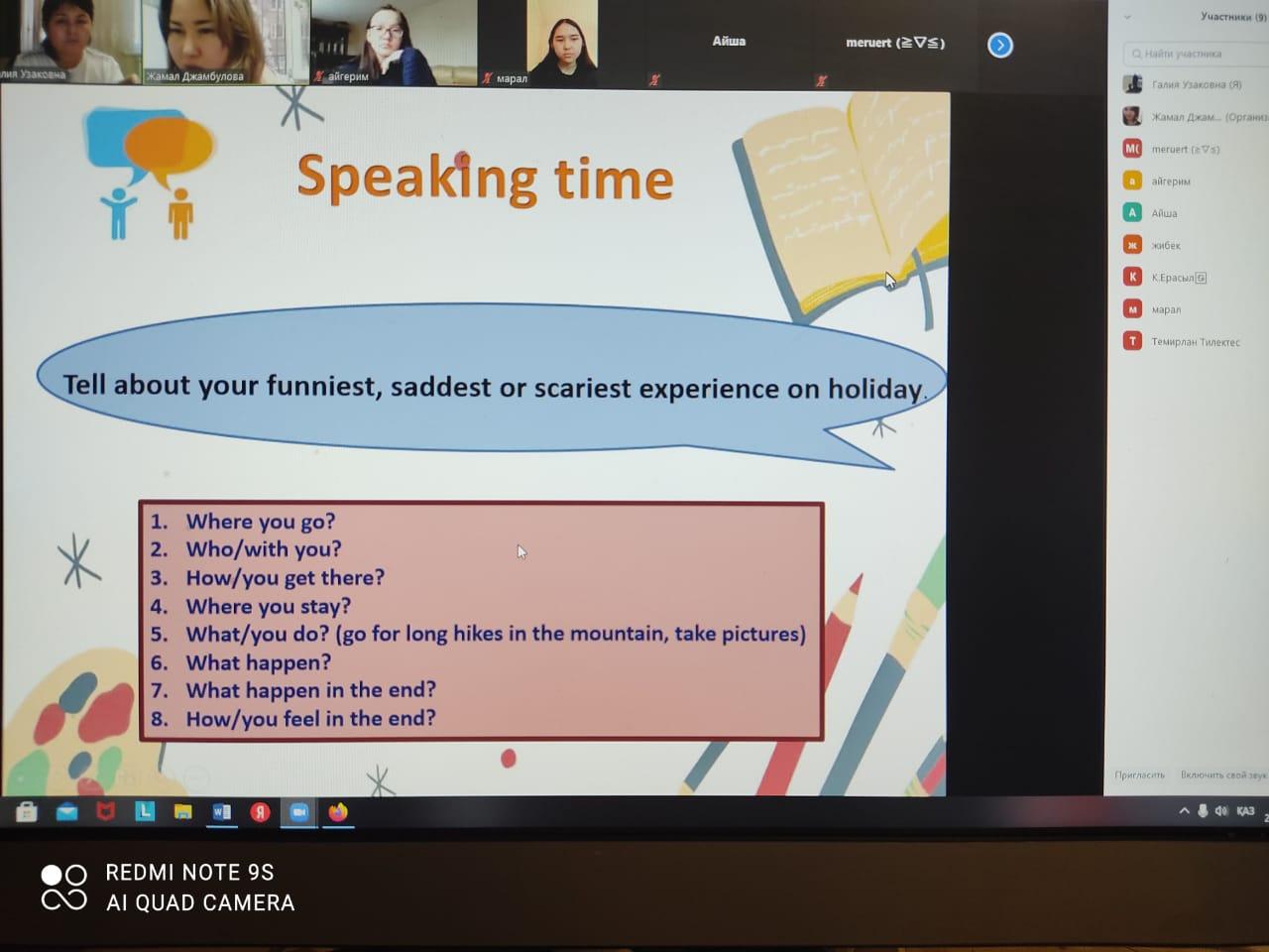 Сүйінбай айтындағы №143 мектеп-лицейде ағылшын тілі пәні мұғалімі Ж.Джамбулованың 7"А" сыныбына "Natural disasters" тақырыбында өткізген сабағына қашықтан директордың оқу ісі жөніндегі орынбасары Ғ. Ұ. Саурықова қатысты.Сабақ барысында оқушылар өте белсенді қатысып, кері байланыс жасап отырды