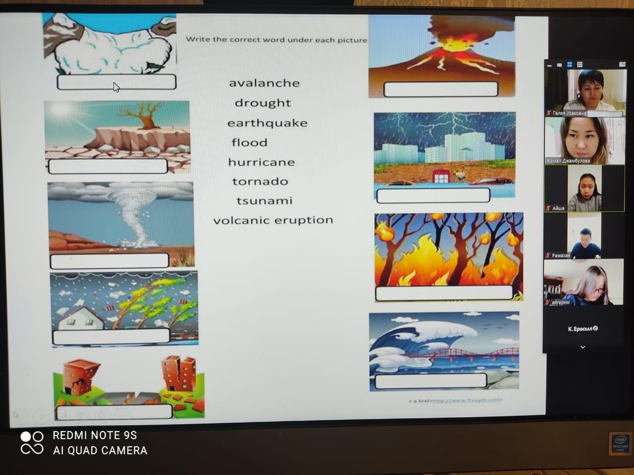 7"А" сыныбына "Natural disasters" тақырыбында өткізген сабағы