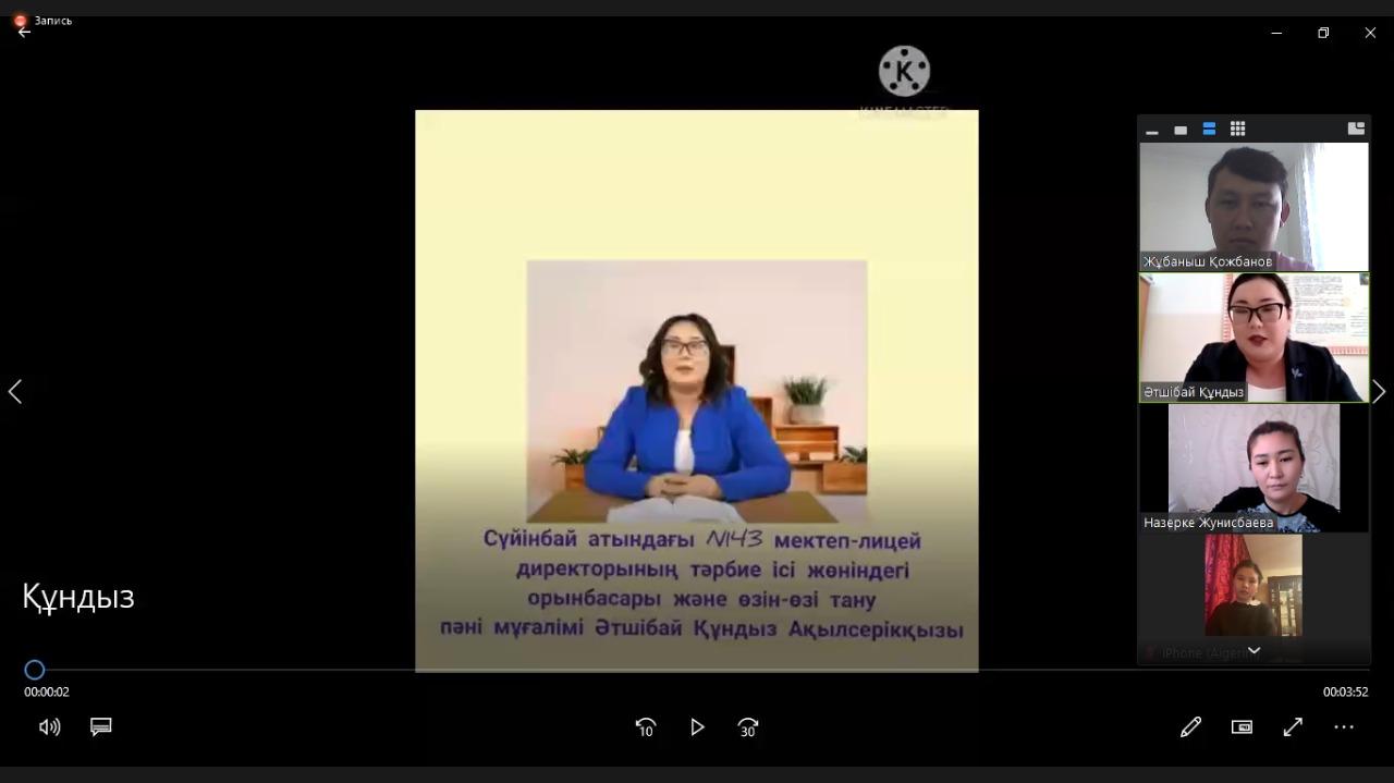 Жетісу ауданы Сүйінбай атындағы №143 мектеп-лицейде Алматы қаласы Білім Басқармасының, Жетісу ауданы Білім бөлімінің тапсырмасына орай Алматы қаласы орта білім ұйымдарының мұғалімдері арасында өткізілетін "Алматының жыл мұғалімі" байқауының ережесіне сүйене отырып мектебімізде "Жыл мұғалімі-2021" мектепішілік байқауы 03.04.2021 күні zoom платформасы арқылы қашықтан онлайн форматта басталды.