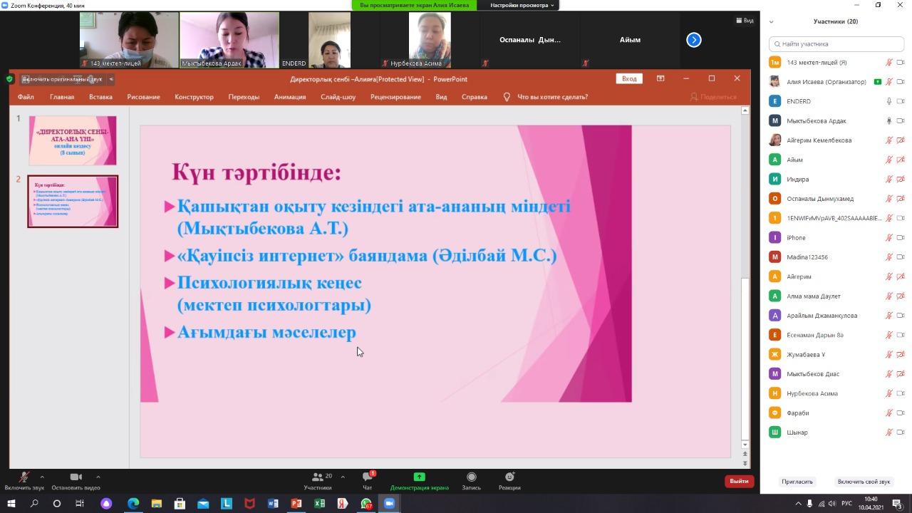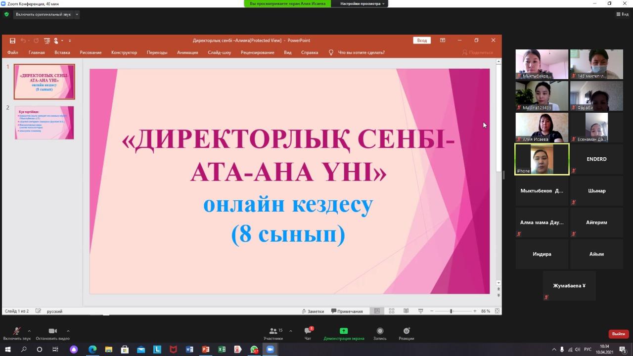 "Директорлық сенбі – ата-ана үні" онлайн-кездесу