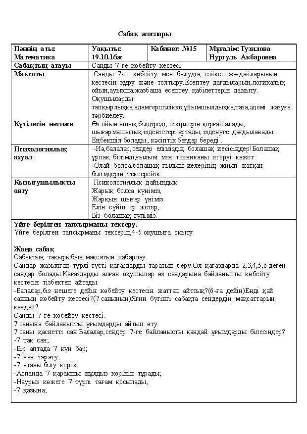 Математика пәнінен ашық сабақ
