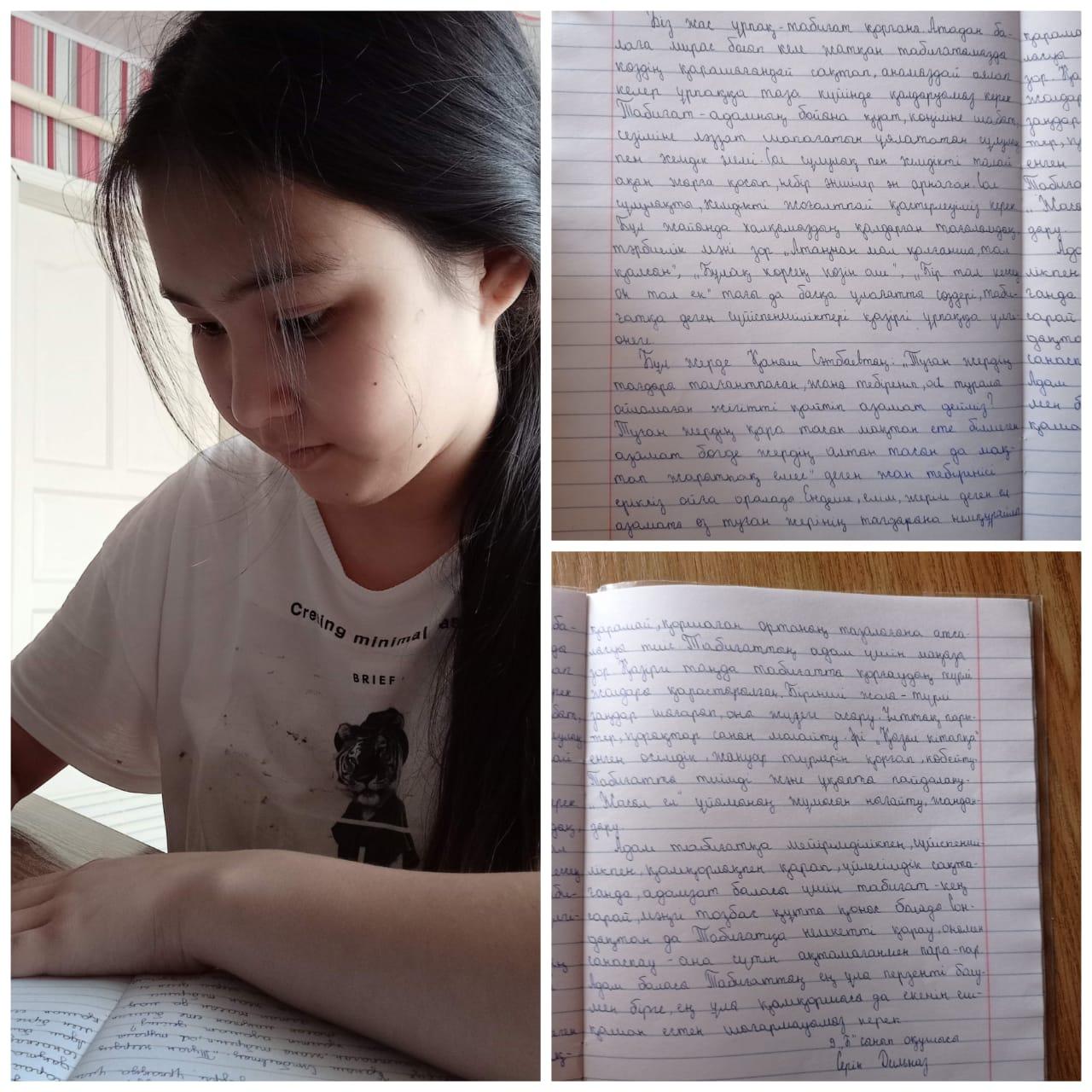 Сүйінбай атындағы №143 мектеп-лицейдің «Жер-біздің ортақ үйіміз» тақырыбындағы экологиялық апталық жоспарына сәйкес мектеп-лицей ұйымдастырған мектепішілік "Мен табиғатты аялаймын" тақырыбында 9 "Б" сынып оқушылары Серік Дильназ, Нұртілеуова Еңлік эссе жазды. Сынып жетекшісі: Сейілбекова Гульбақша