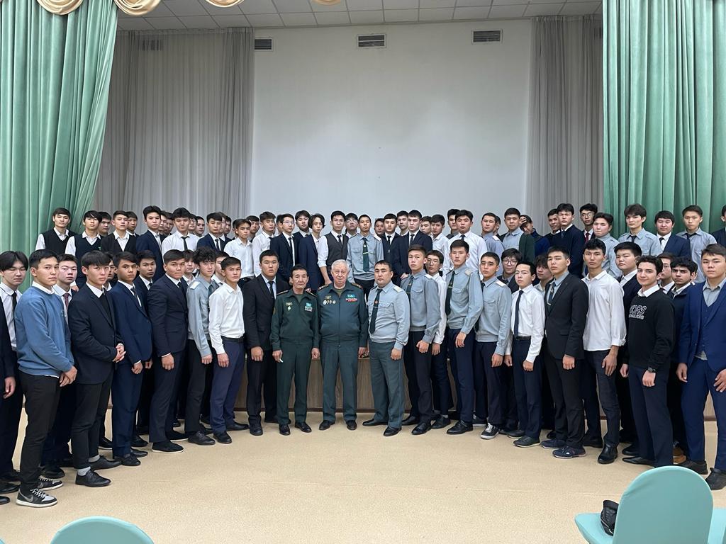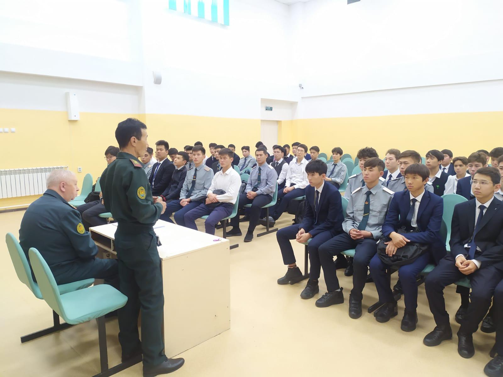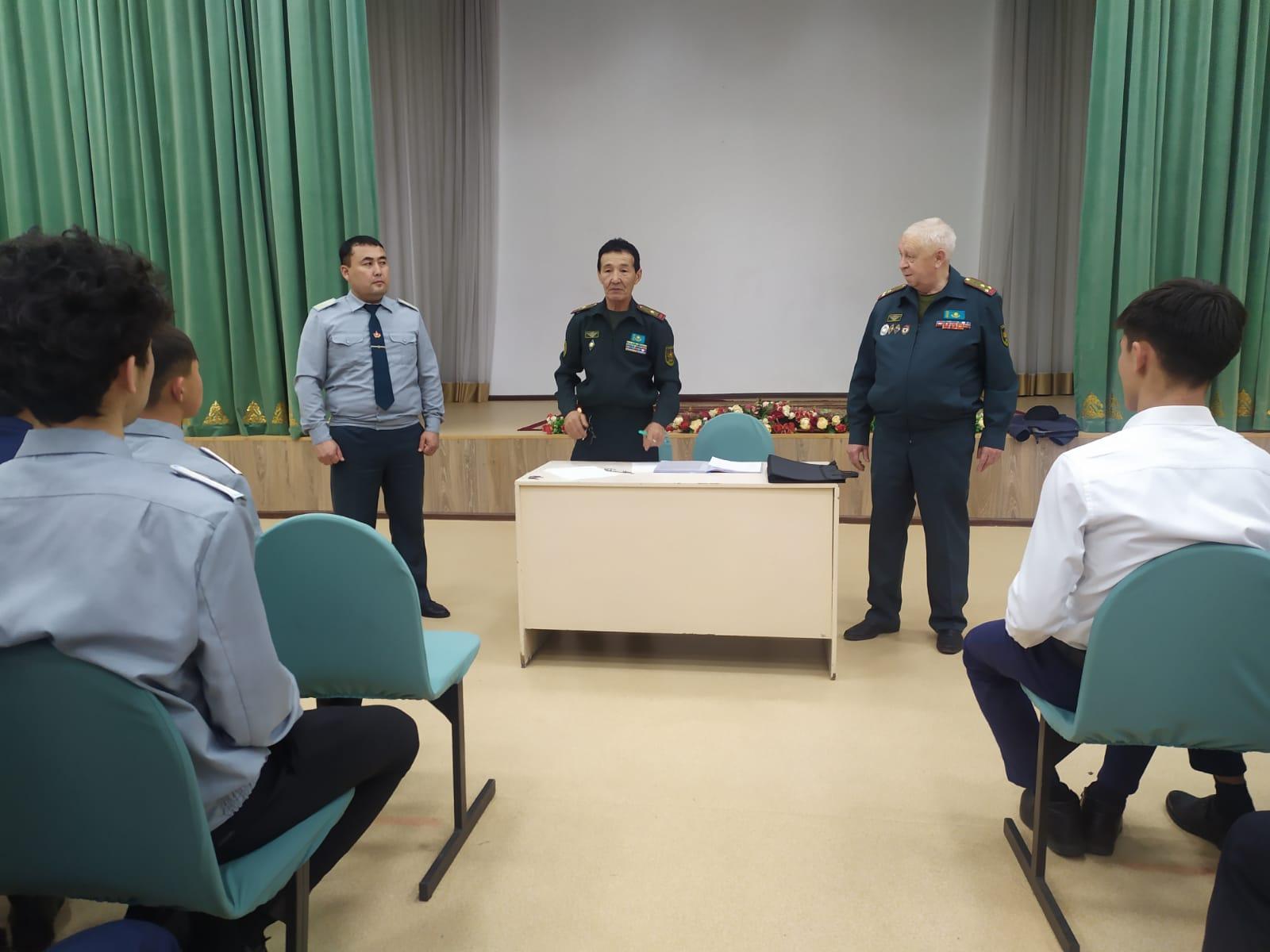 майор Намазбаев Мукаш,АӘД пәнінің мұғалімі Жораев Ғалымжан Асатбековичтің қатысуымен"Ерлік сабағы" өтті.