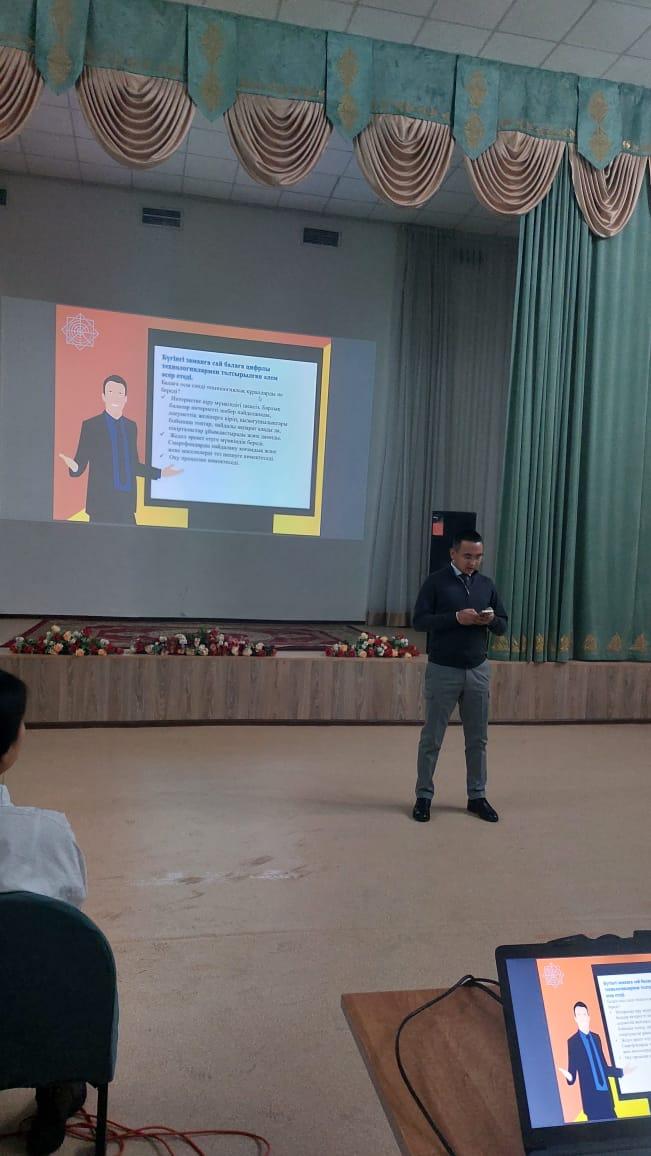 Жетісу ауданы Сүйінбай атындағы №143мектеп-лицейдің оқушыларына 2022 жылдың 06 желтоқсан күні Қазақстан Республикасының Қаржылық Мониторинг Агенттігінің өкілі Әлмұратов Садуақас Жаңабайұлы "Қауіпсіз Интернет" тақырыбында түсіндірмелі әңгіме жүргізді.Оқушылар көптеген пайдалы және қажетті ақпараттар алды.