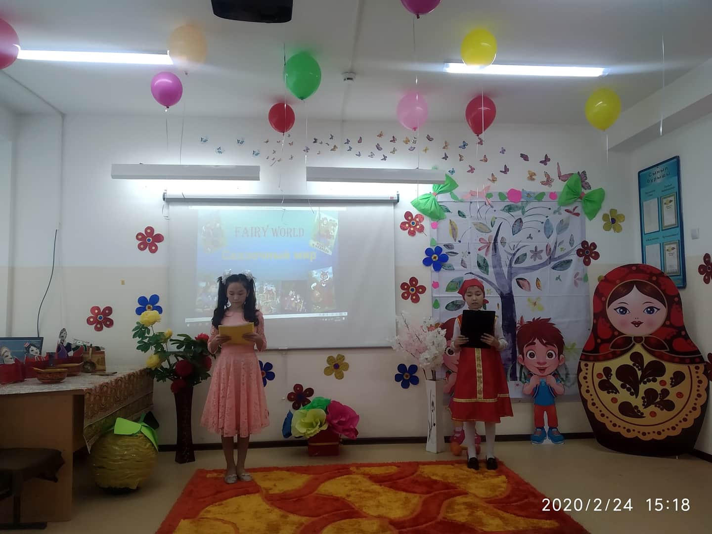 Сүйінбай атындағы №143мектеп-лицейде орыс тілі мен әдебиеті және ағылшын тілі онкүндігі аясында орыс тілі мен әдебиеті пәні мұғалімі Ү. Шубай мен ағылшын тілі пәні мұғалімі Д. Қауынбаева бірлесе отырып сыныптан тыс "Сказочный мир" тақырыбында іс-шара өтті.